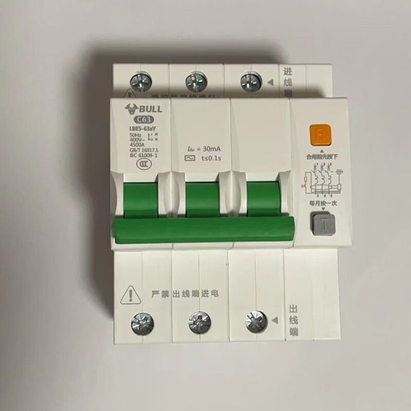 Bull 63a air switch with leakage protector 32a air conditioner water heater household 2p circuit breaker leakage protection air switch 100A 1P+N