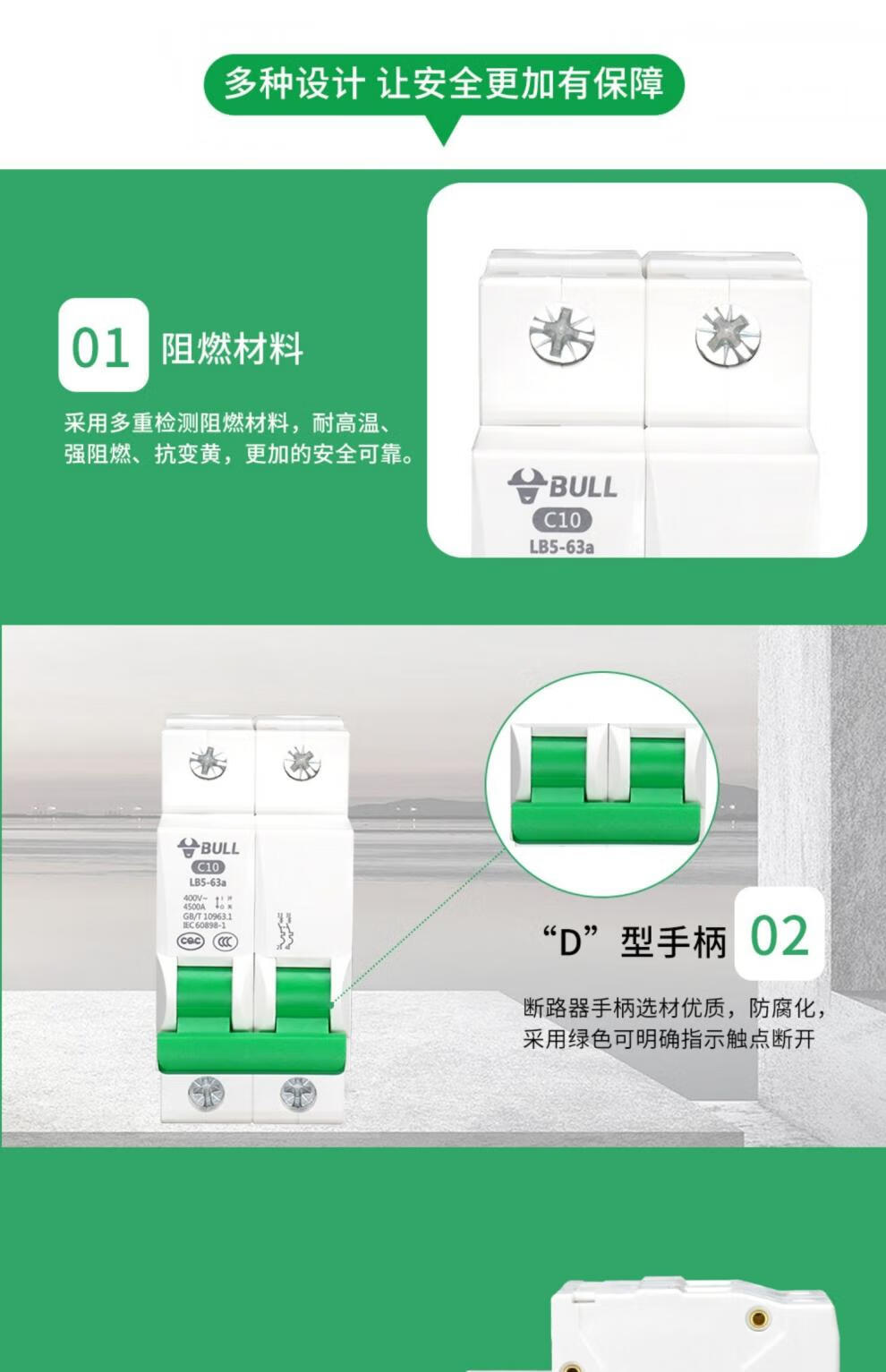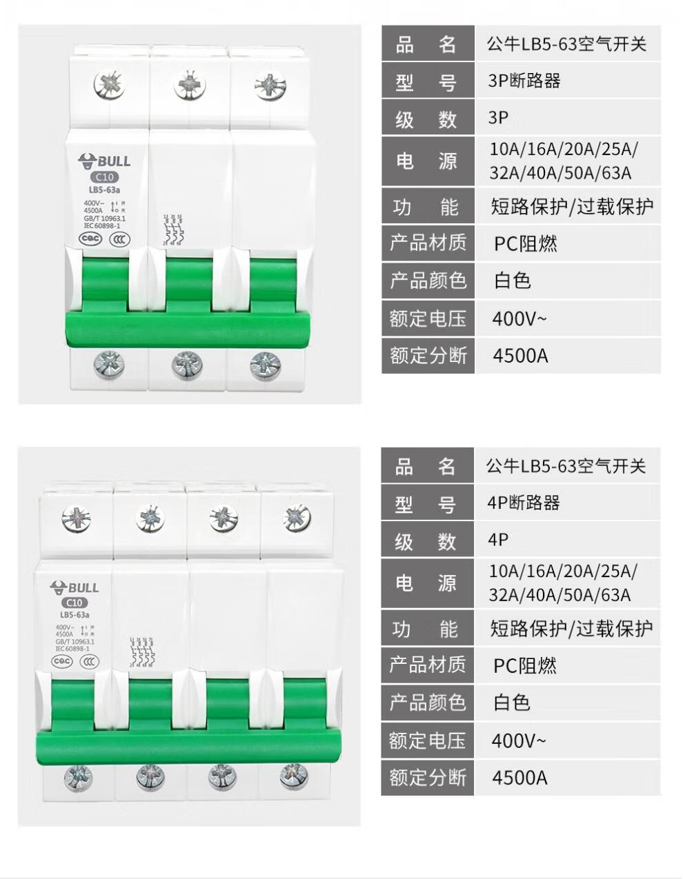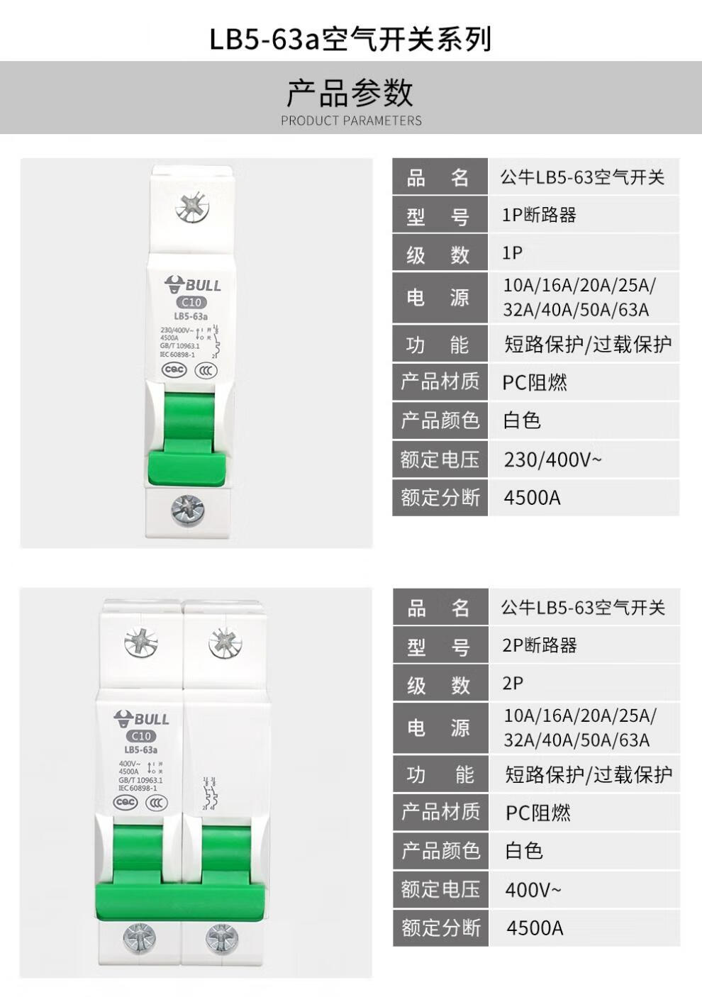 Bull air switch circuit breaker overload load protection household electric switch knife 1p2p16a20a32a63a Ampere 10A 1P