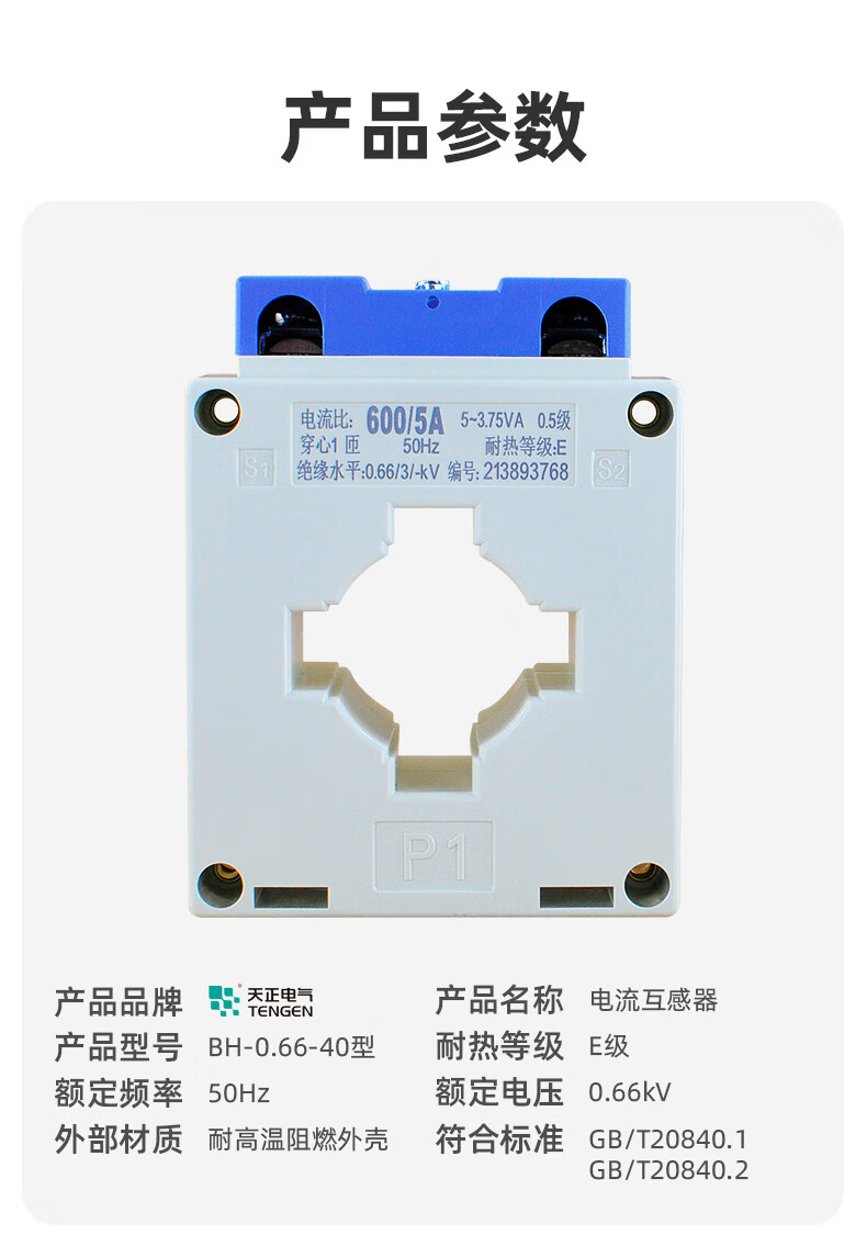 TENGEN Tianzheng Electric BH-0.66 current transformer 300 400/5 500/5 600/5 hole spacing 40MM 0.5 level 150_5_40mm