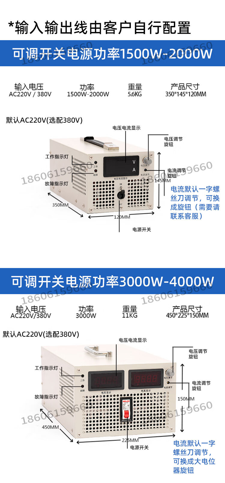 Miqi high power adjustable DC regulated switching power supply 24V48V72V400V500V600V800V1000V DC0-12V 30KW