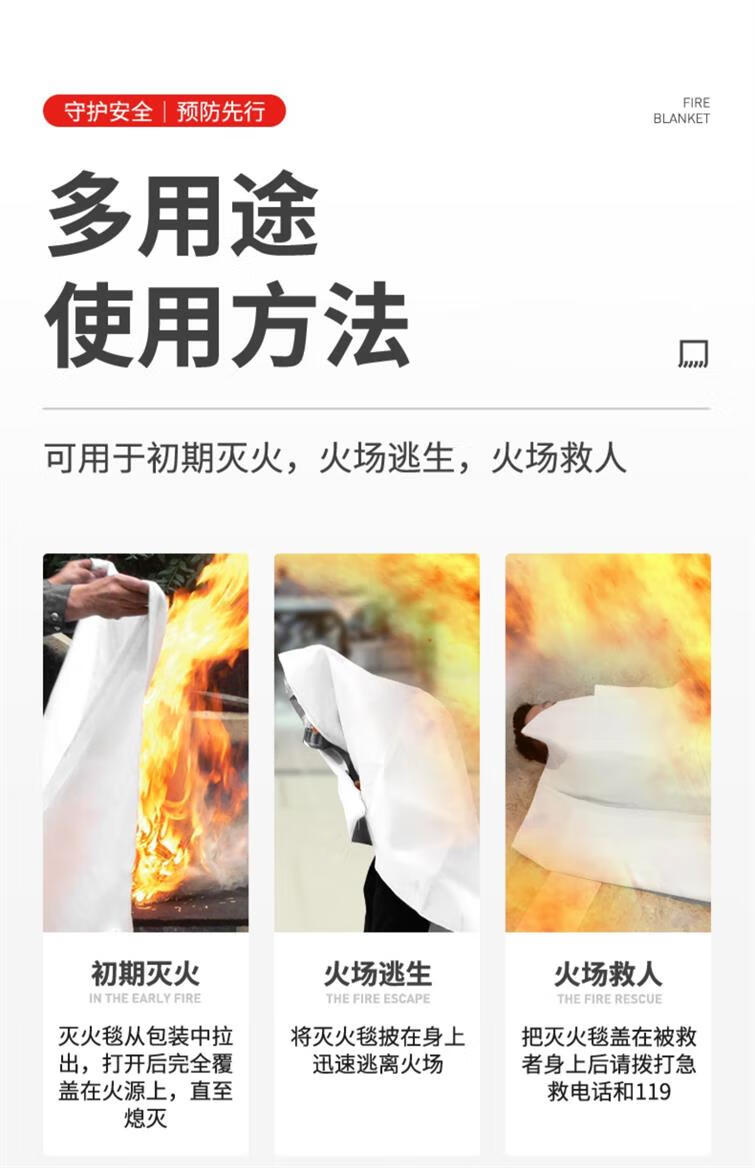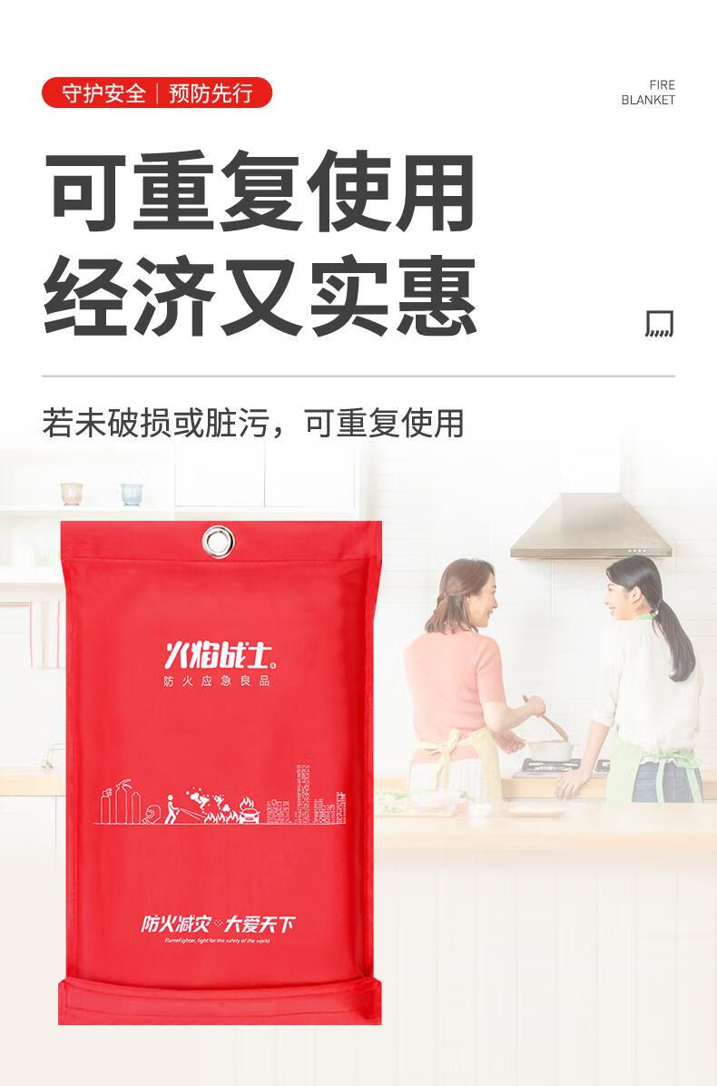 Flame Warrior Fire Blanket Fire-fighting Special Fire Blanket Fire Mat Kitchen Home Escape Fiberglass Silicone 1.5M Fire Blanket + Free Glove Hook Upgraded and Thickened