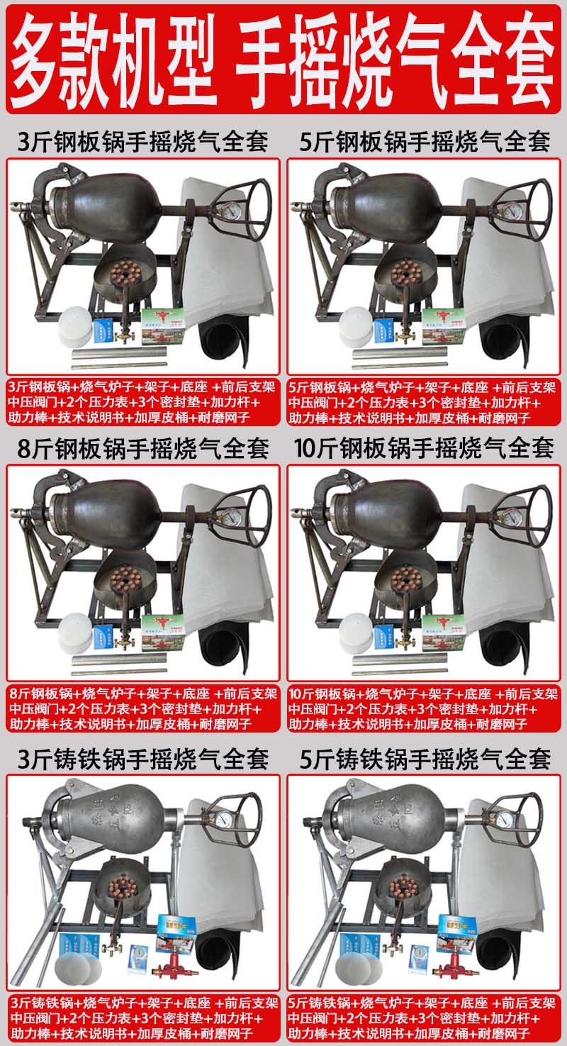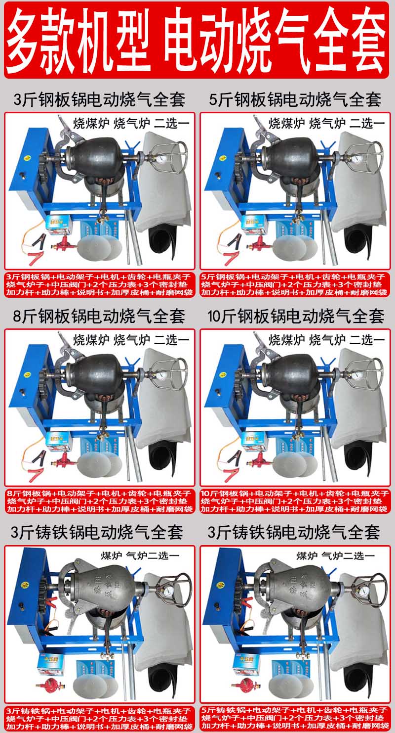 Hand-cranked electric old-fashioned popcorn machine pot commercial fully automatic cannon pot popcorn rice chestnut puffing machine 10 catties steel pot hand-cranked complete set optional gas stove