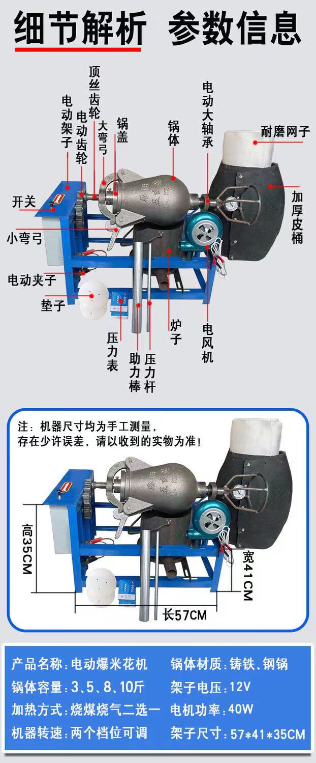 Old-fashioned popcorn machine pot commercial stall traditional fully automatic electric hand-cranked cannon fried chestnut popcorn puffer three pounds of cast iron electric coal-burning complete set