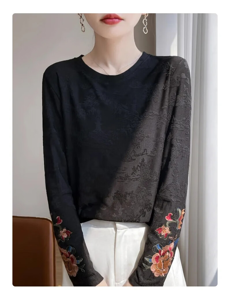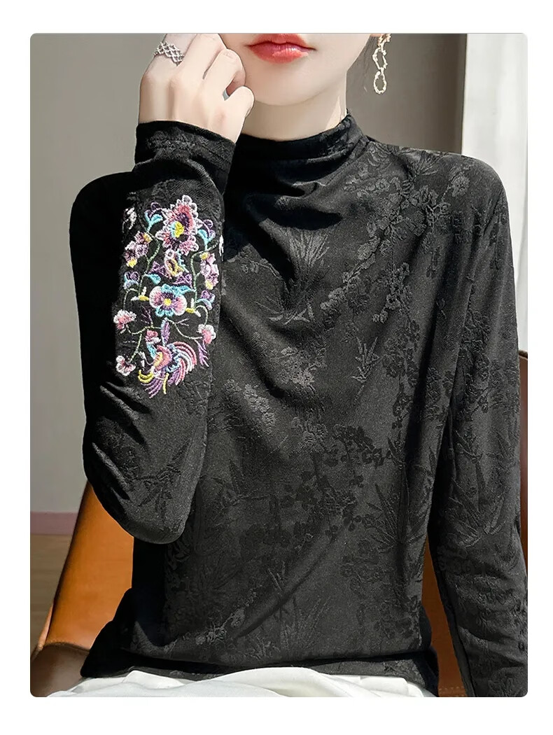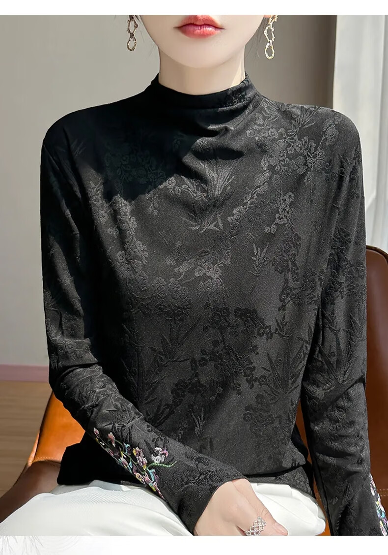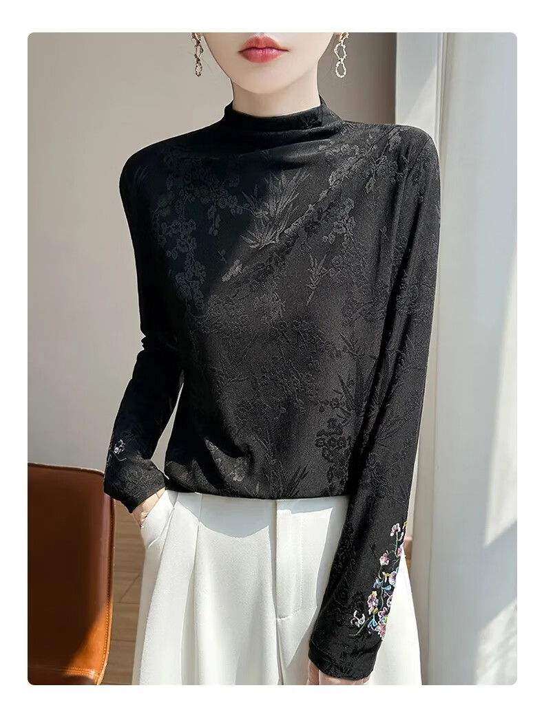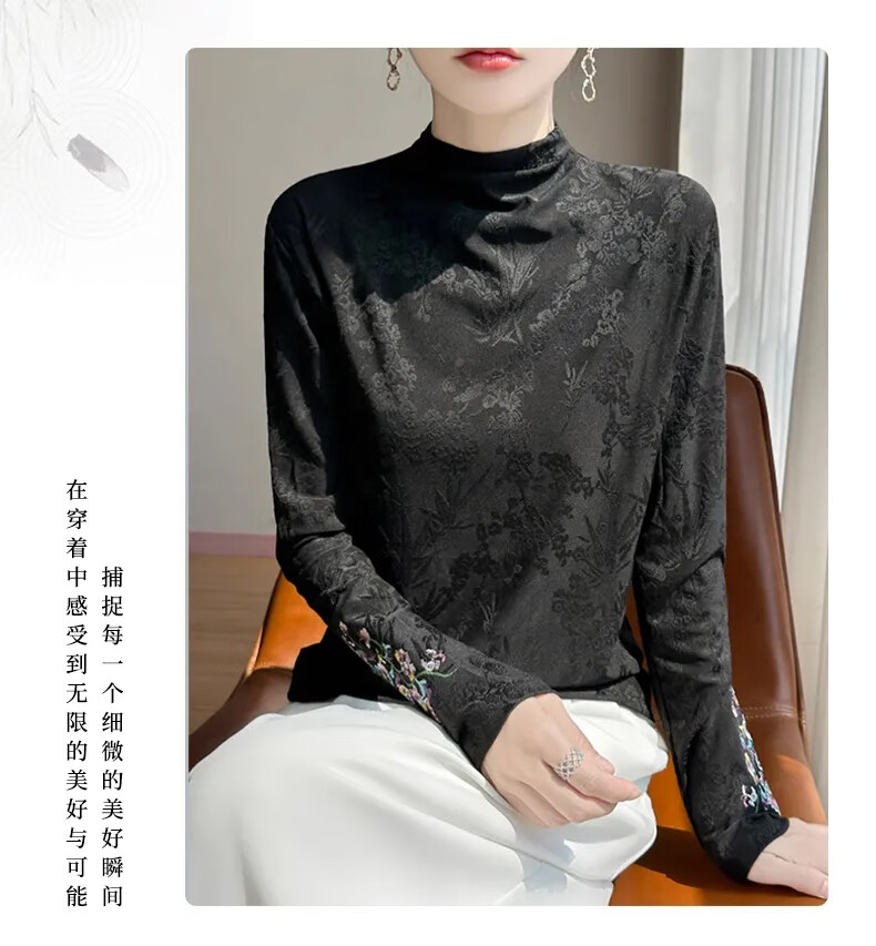 Suding women's original brand flagship store versatile half turtleneck/round neck heavy industry exquisite embroidery bottoming T-shirt autumn half turtleneck off-white XL