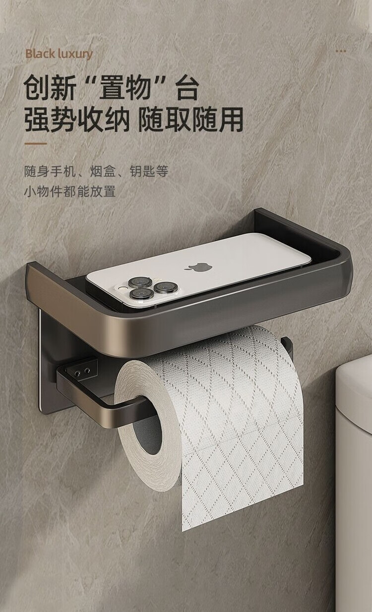 Mo Peng bathroom tissue box wall-mounted punch-free thickened tissue holder space aluminum bathroom toilet storage rack space aluminum home bathroom toilet paper box glacier white punch-free mobile phone tissue holder