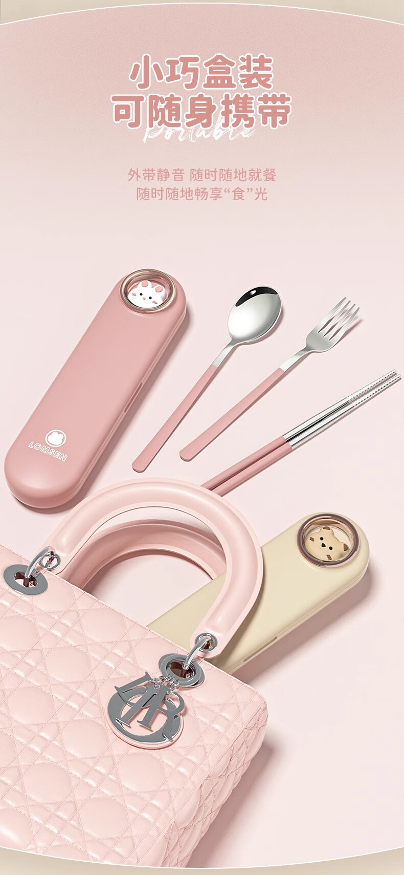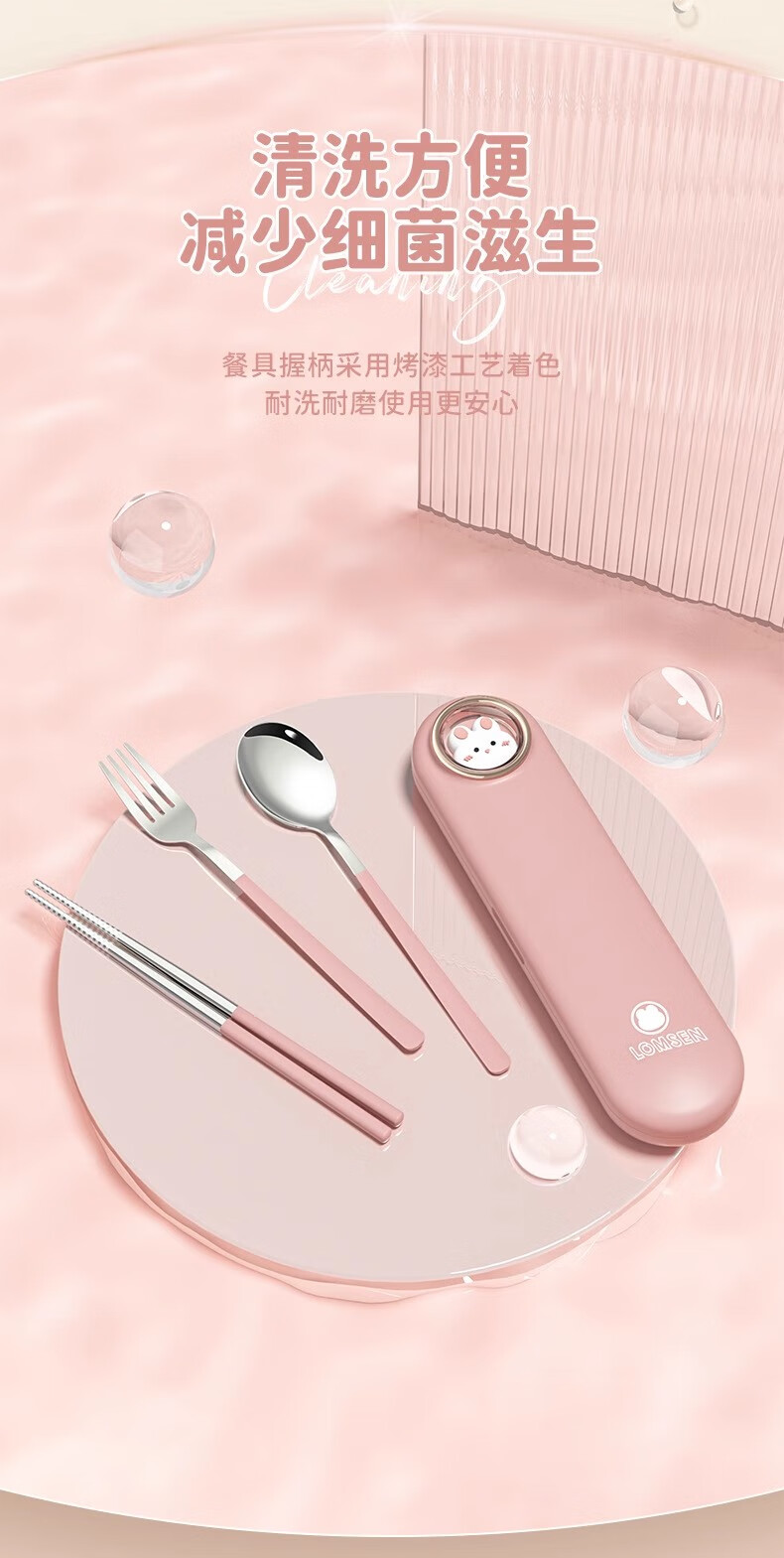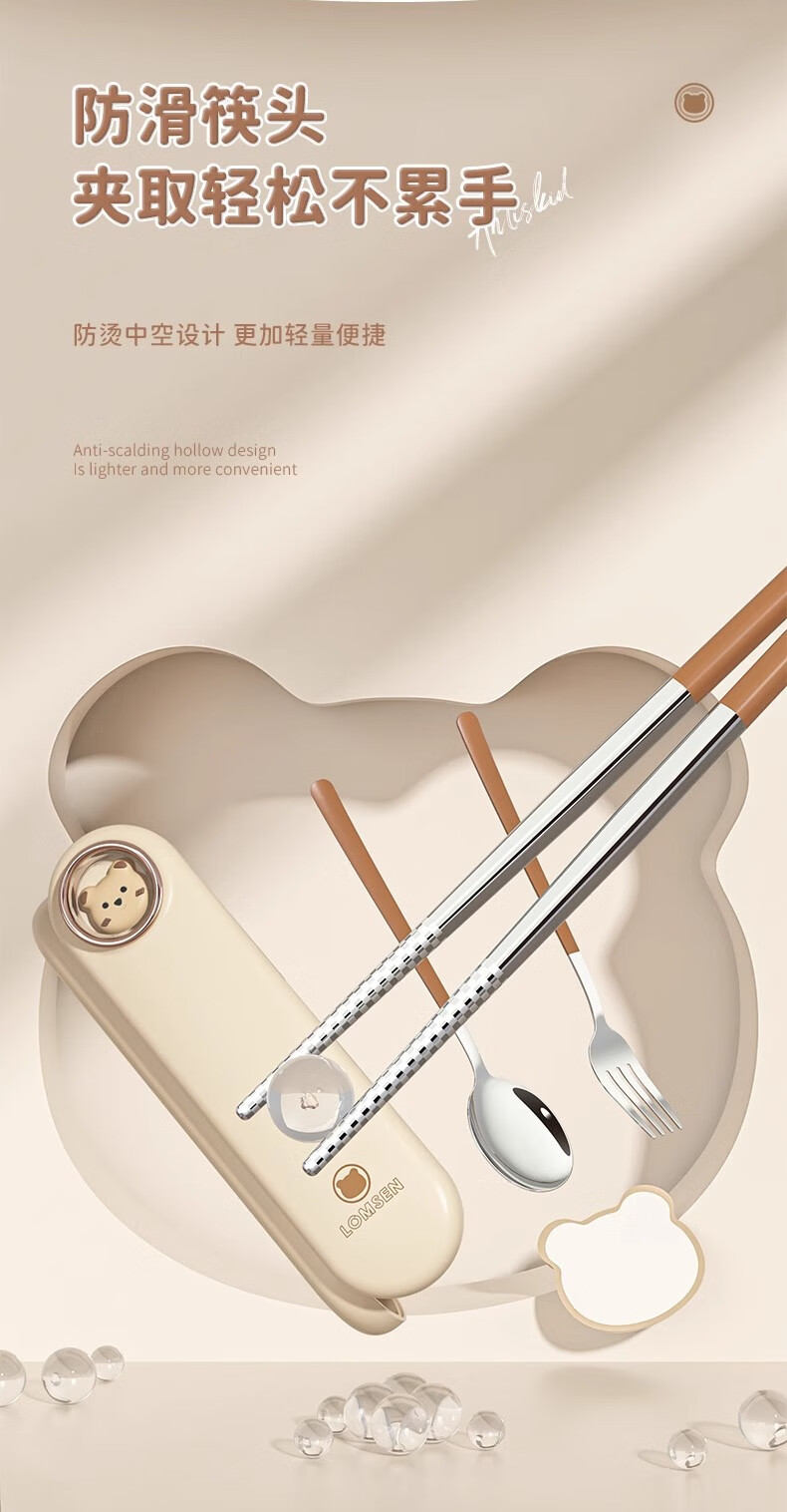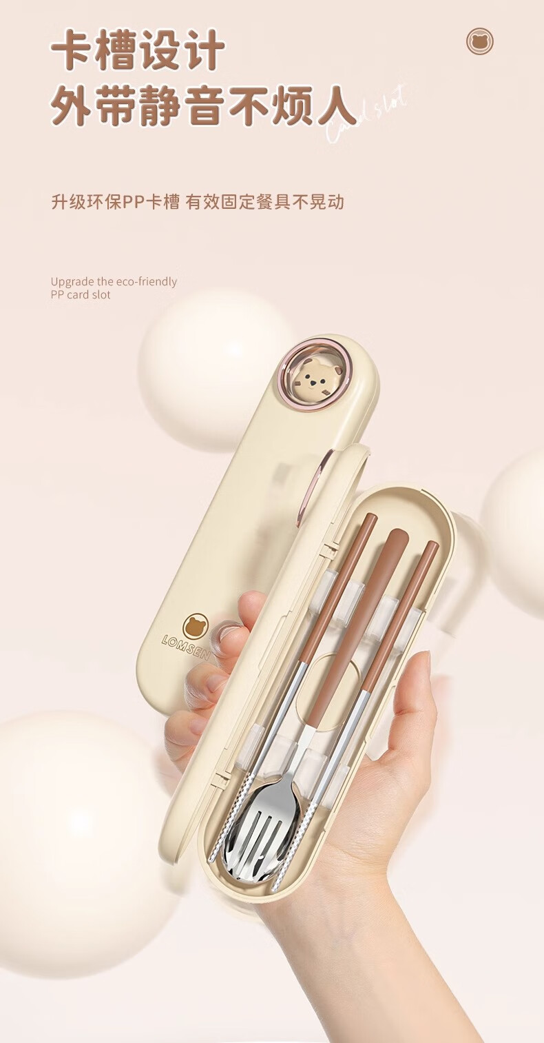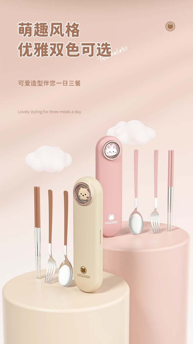 DEATKN German chopsticks and spoons set portable cutlery box children's chopsticks forks and spoons four pieces for students going to school and office workers three-piece set of forks, spoons and chopsticks pink