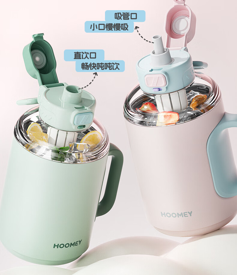 HOOMEY Insulated Cup Large Capacity Big Mac Large Ice Domination Water Cup Tons Bucket Tons Women's Beautiful Cool Cup Summer 316 Stainless Steel Long-lasting Ice Insulation + Free Tea Storage + Straw + Cup Brush Cloth