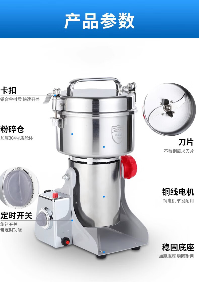 DL quality purchasing electric grinder Chinese herbal medicine pulverizer ultra-fine grinding household small dry grinding Lingsheng 800g copper motor 430 grinding chamber/steel blade (overload protection