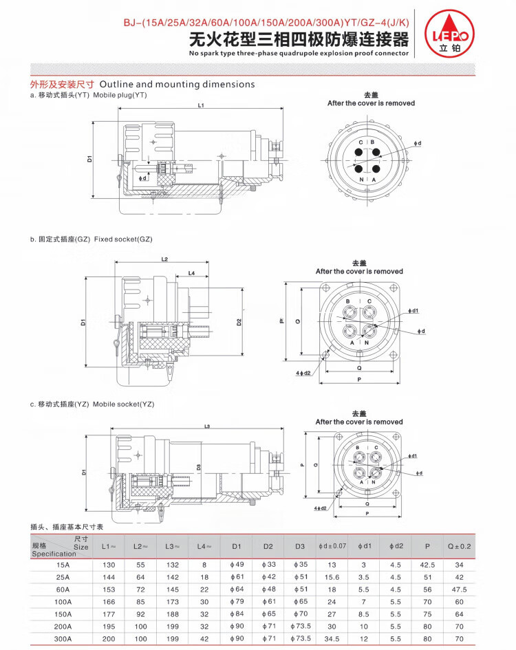 TypeBJ-60YT Yueqing Libo explosion-proof plug aviation socket non-sparking connector pin 5j plug (male) BJ-YT 25A_single-phase three-pole-3 core