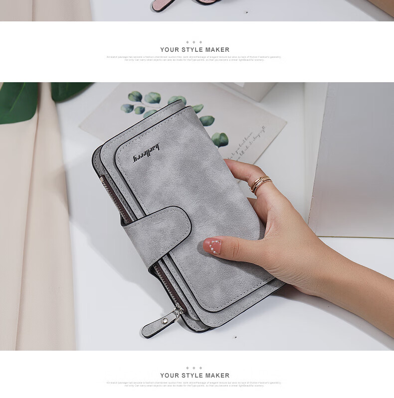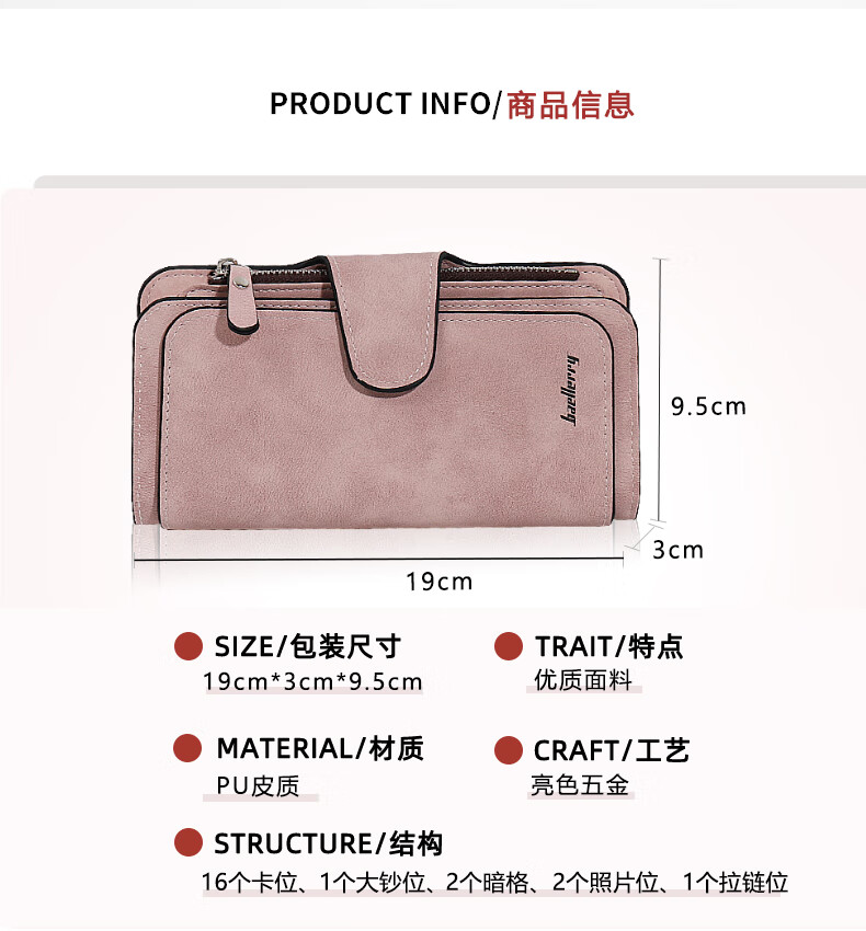 Kangaroo (KANGAROO) wallet women's exquisite soft leather frosted wallet women's long multi-card slot folding card holder wallet all-in-one bag for women pink