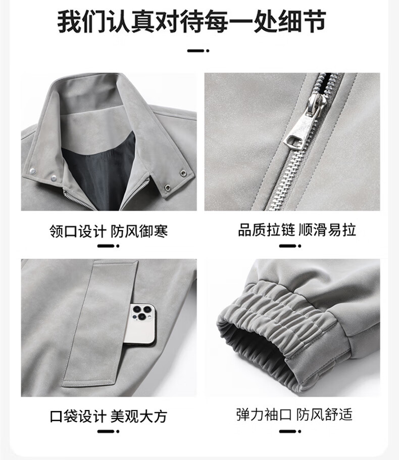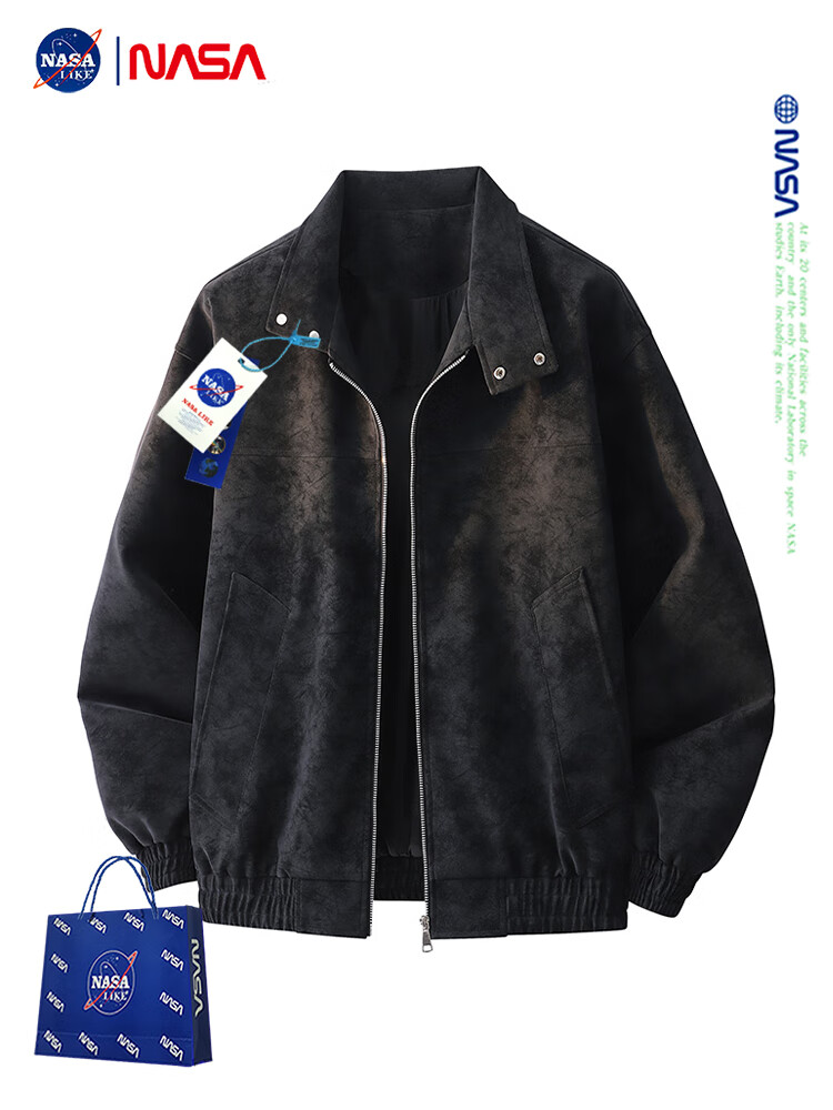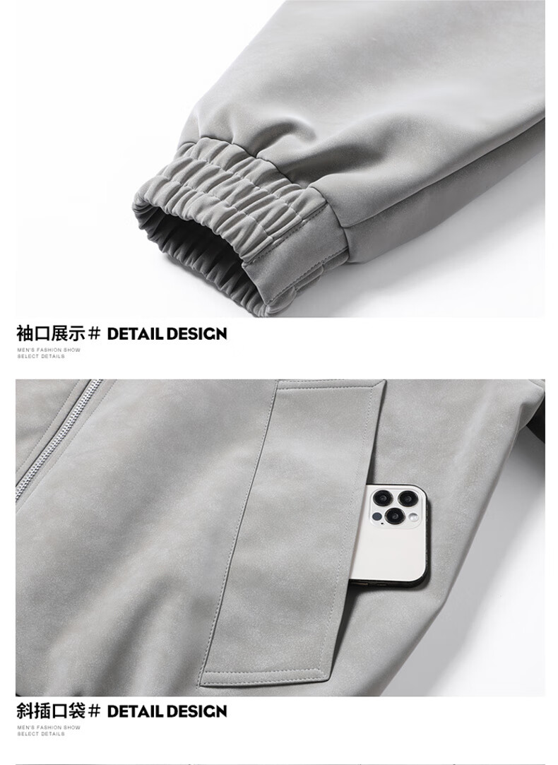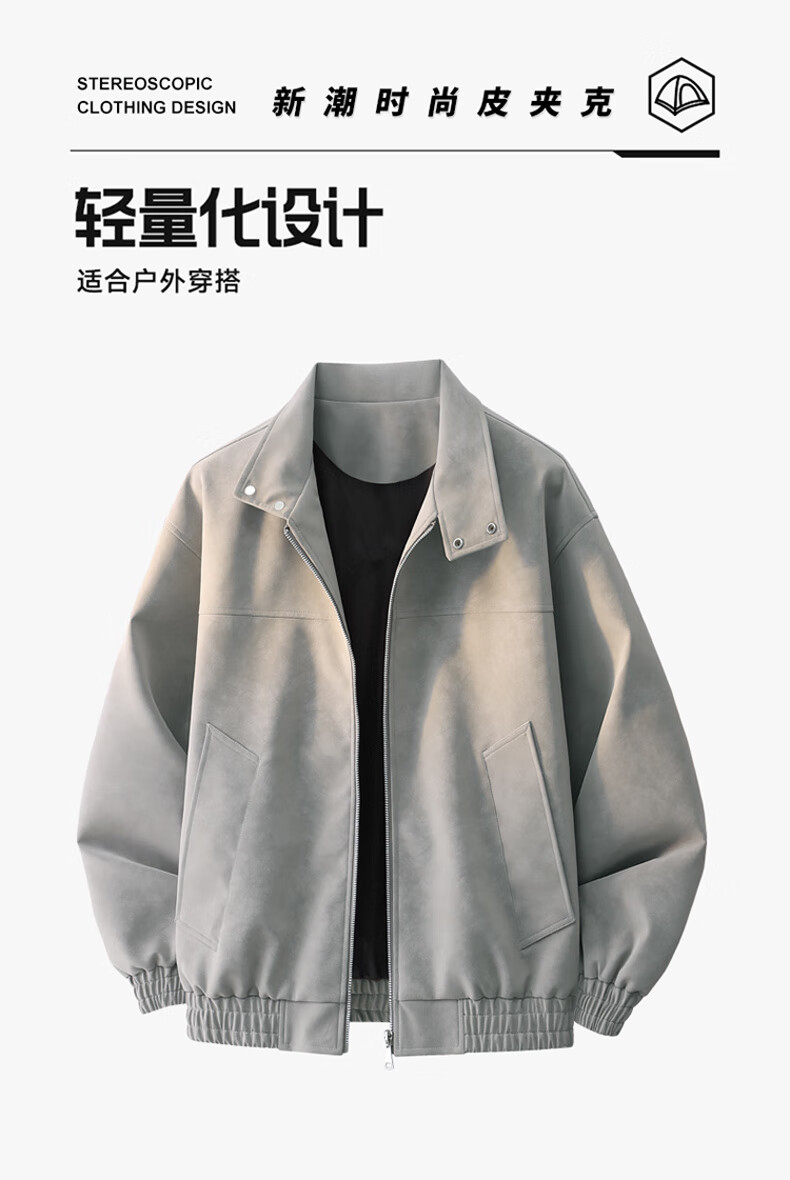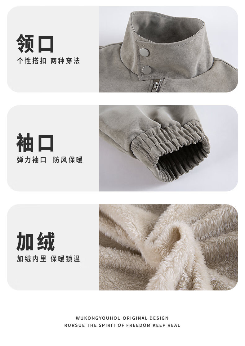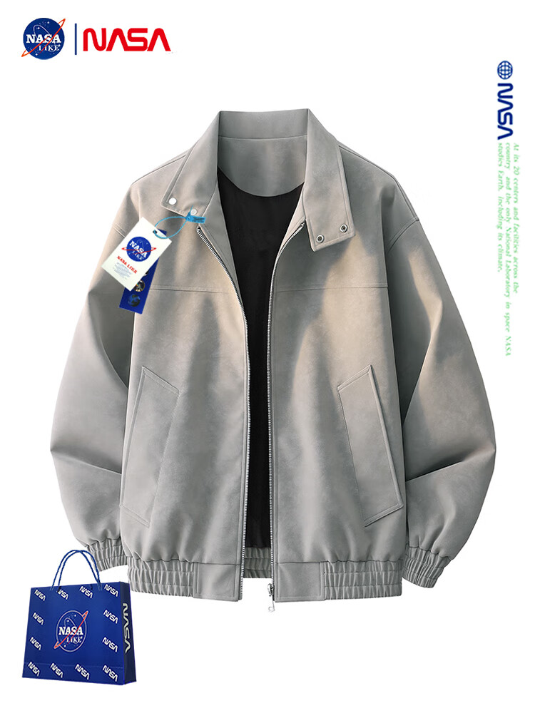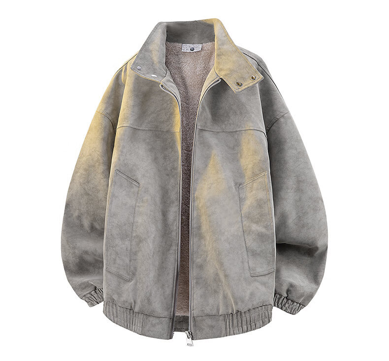 NASALIKE American Jacket Men's Autumn and Winter 2025 New Loose and Versatile Casual Handsome Teenage Pilot Leather Jacket Gray Velvet L (Recommended 110-130 catties)