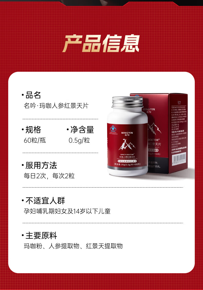 Mingyin Mingyin Xiaohong Bottle Maca Tablets Xiaohong Bottle Famous Drink Mingyin Mingling Yinyin Jinyin Xiaohong Bottle Xiaohong Bottle Replenishes the Kidney Single Bottle Periodic Packing for Better Effects