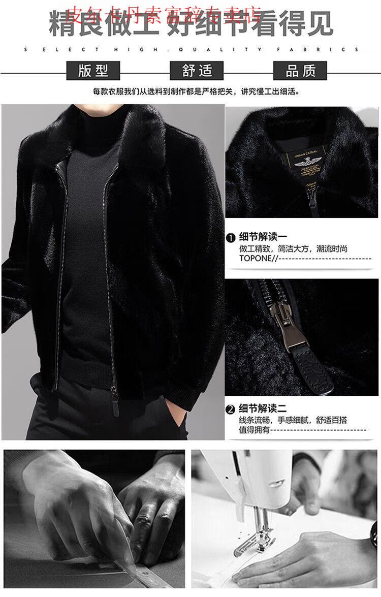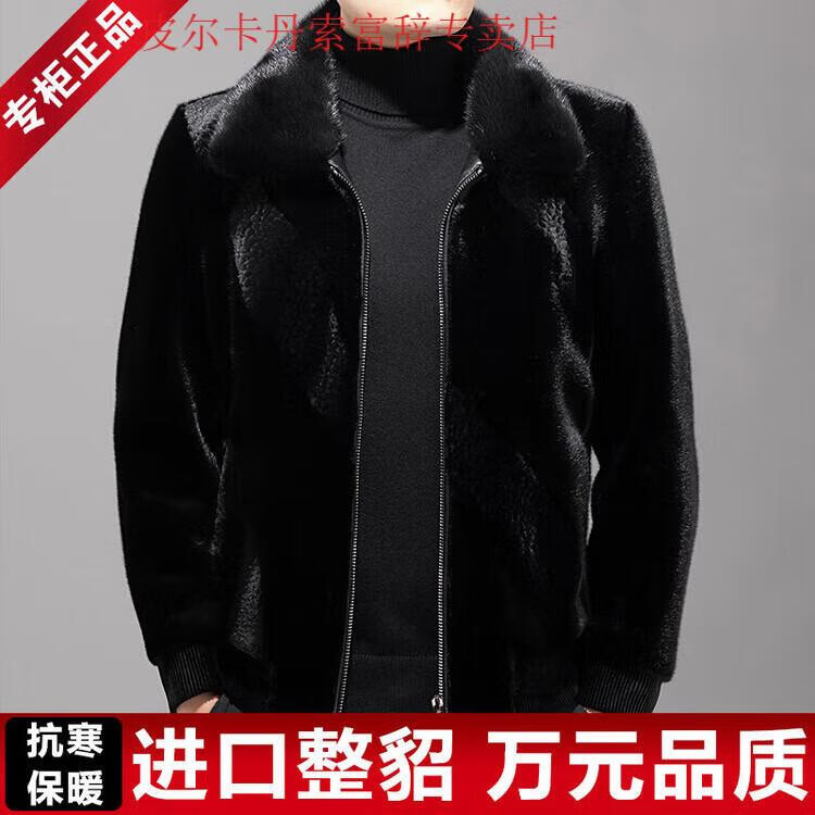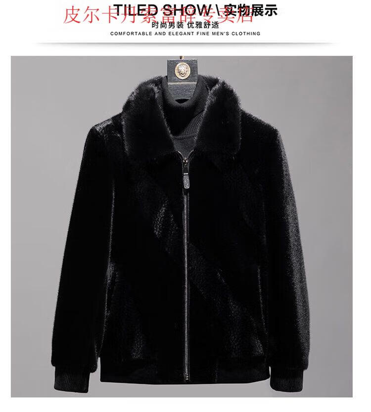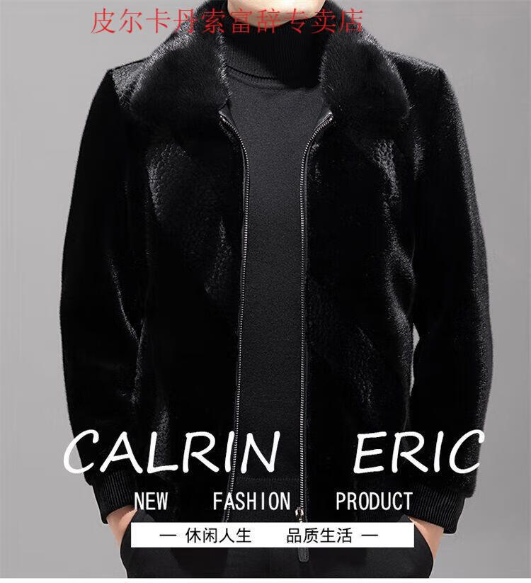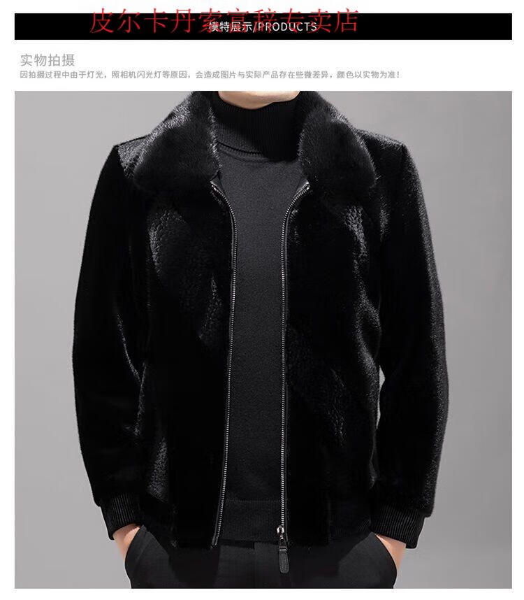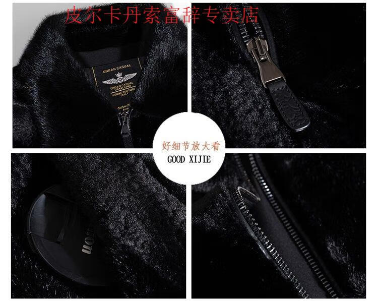 Pierre Cardin mink jacket men's winter new thickened mink velvet fur coat Haining high-end mink whole mink coat black hooded thickened gold mink velvet S 70--85 catties