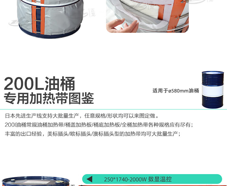 Zhenglong 200L oil drum silicone rubber electric blanket tank iron drum heating belt liquefied gas bottle heater heating jacket square ton barrel heating blanket customization