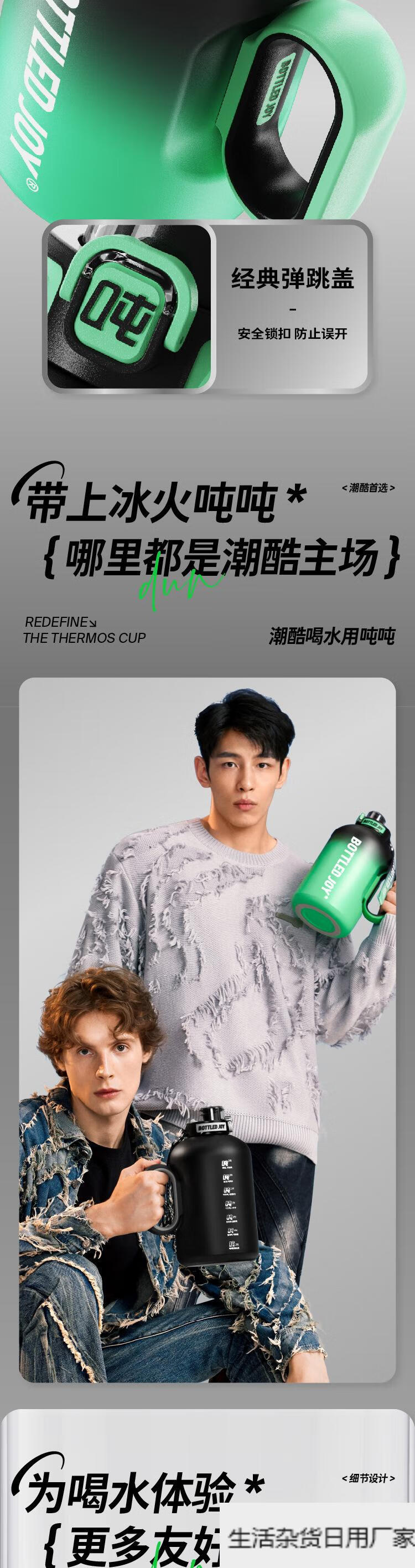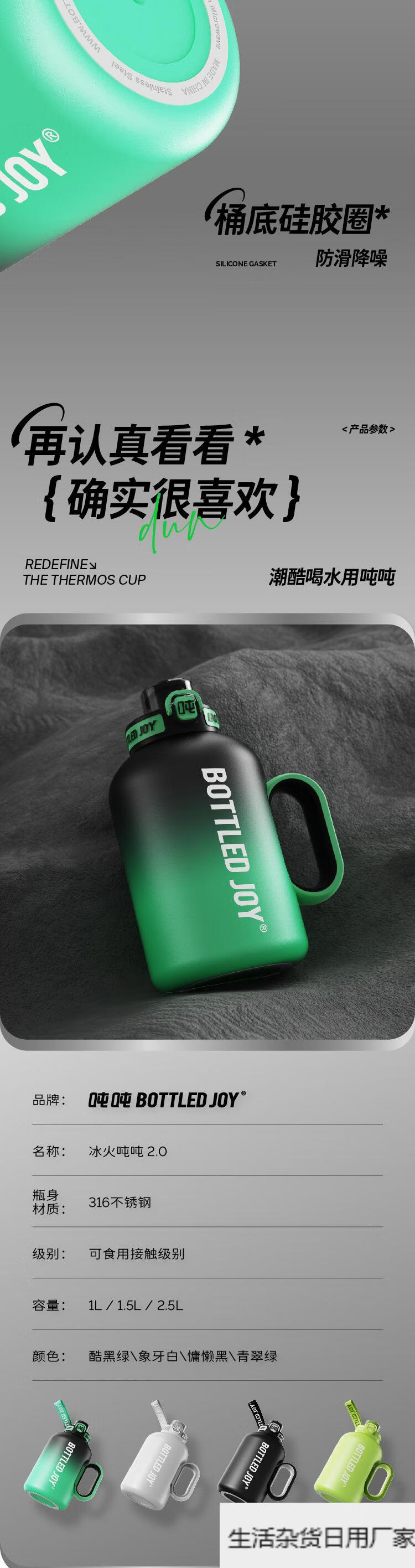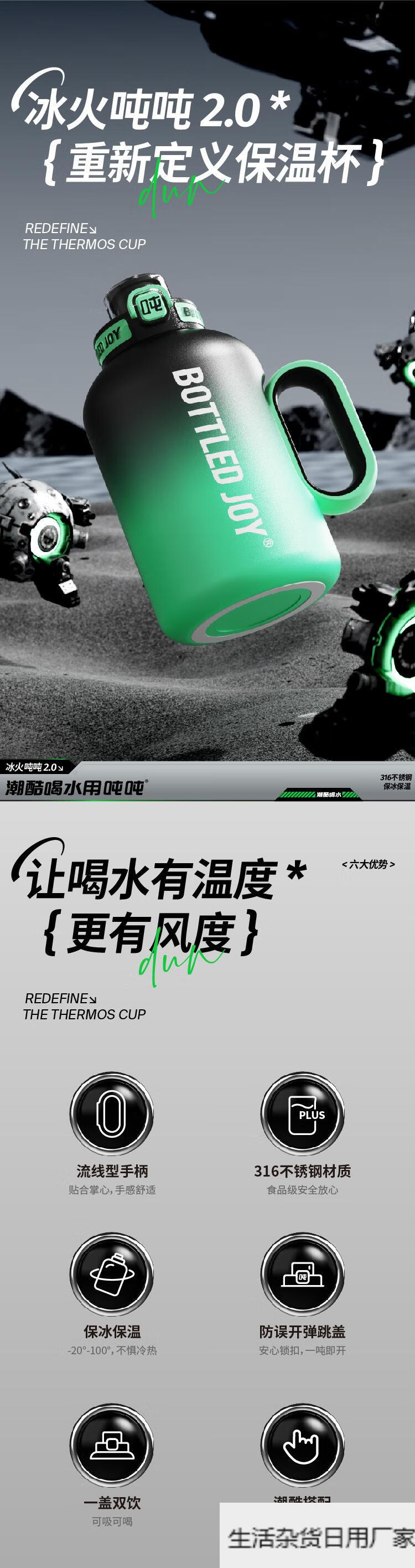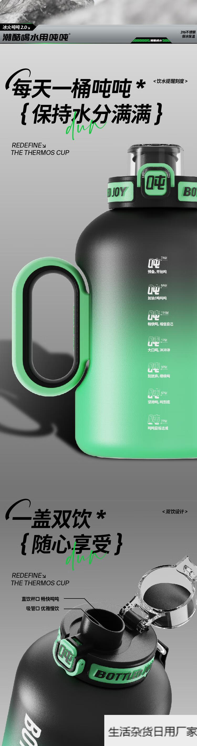 Wang Yibo's official same style ice fire ton ton barrel thermos cup for women large capacity straw water cup kettle official authentic 1.5L cool black green 1L or more