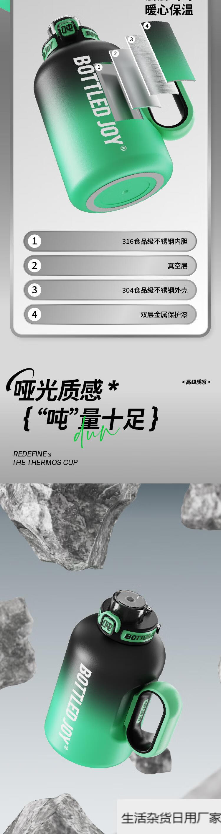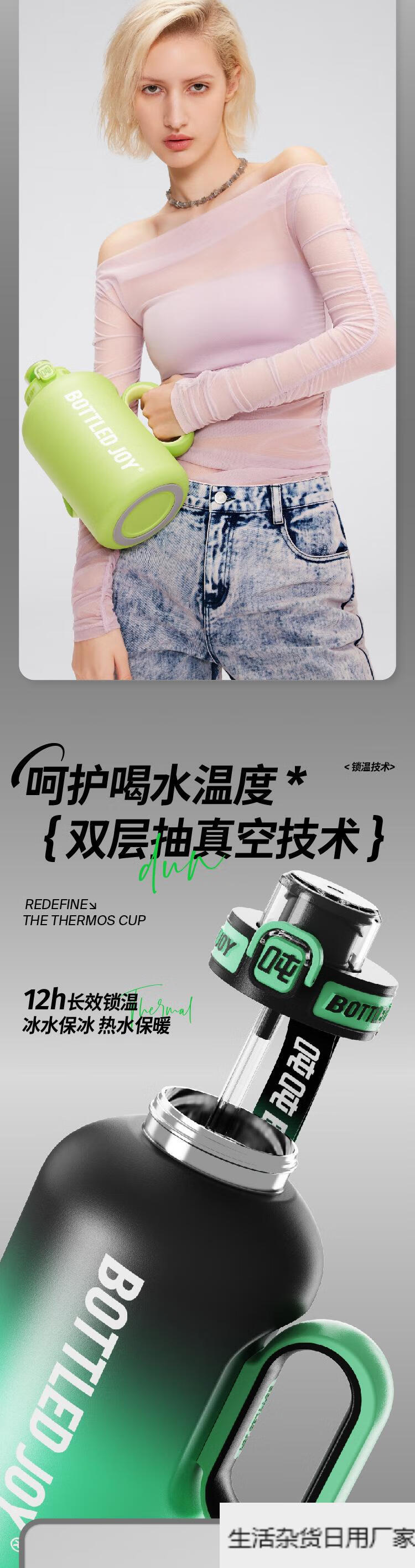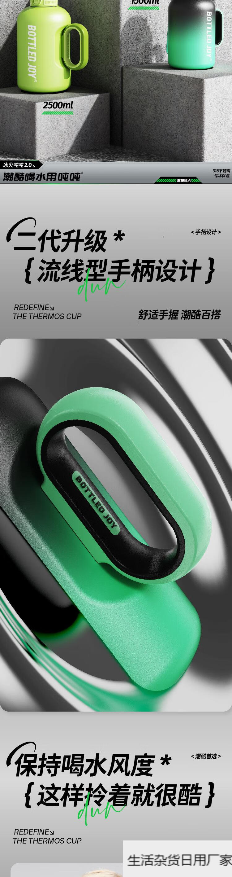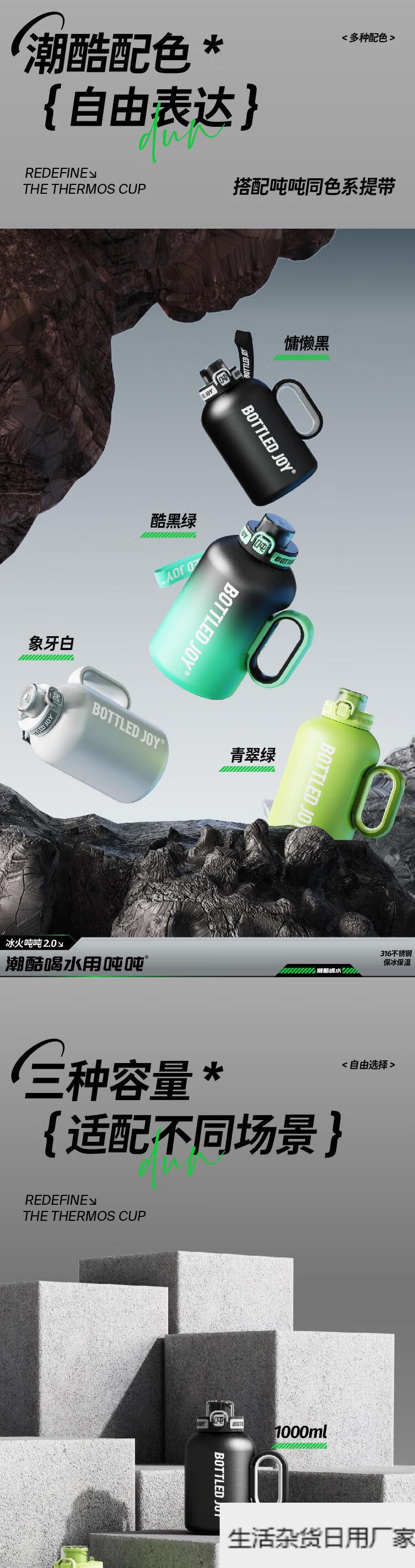 Wang Yibo's official same style ice fire ton ton barrel thermos cup for women large capacity straw water cup kettle official authentic 1.5L cool black green 1L or more