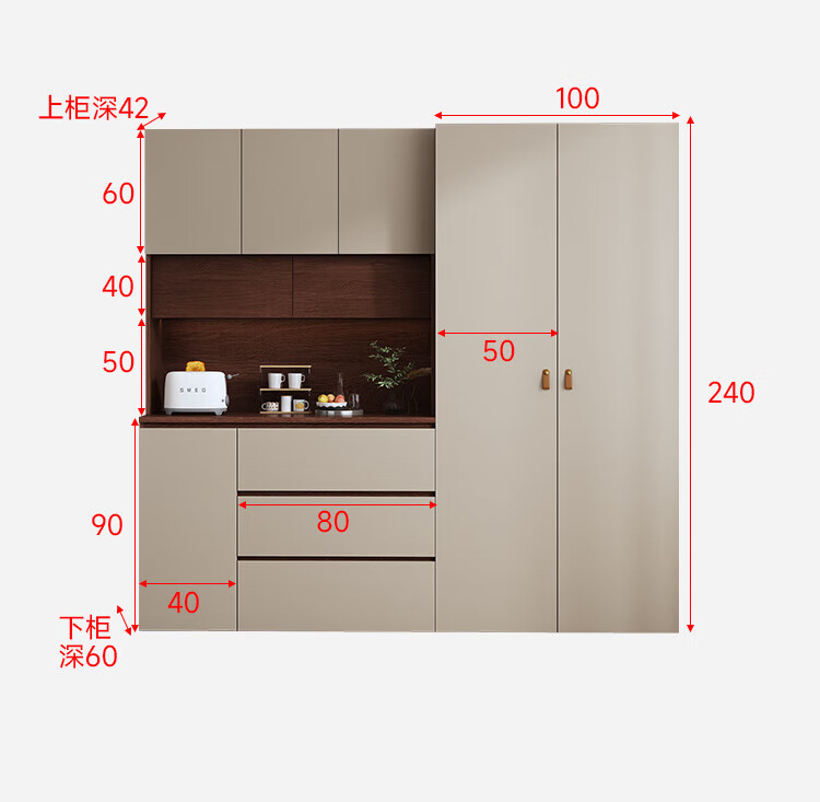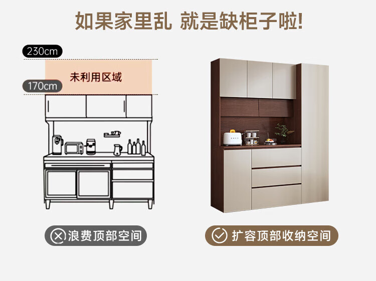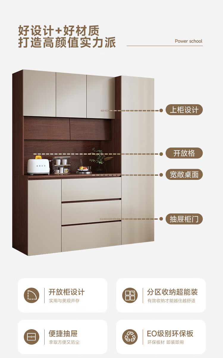 He Jiagong mid-century style living room sideboard wall-mounted integrated storage cabinet multi-functional snack wine cabinet home restaurant tea high cabinet Type C (eo ecological board) length 220*height 220*depth 42