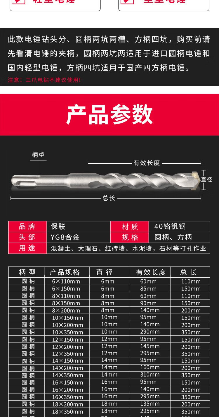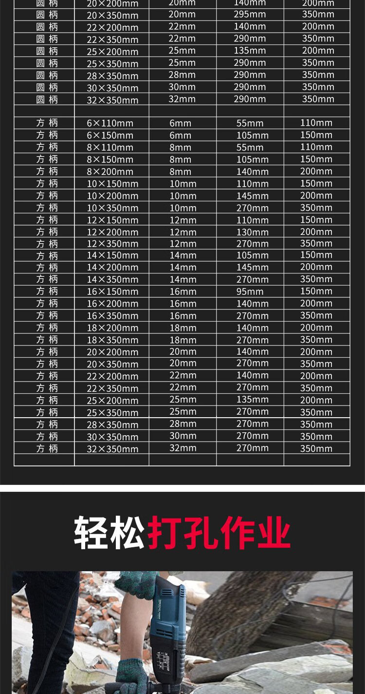 Bosch extended impact electric hammer drill bit through wall, two pits, two slots, round handle, four pits, square handle, concrete water 35*350 round handle