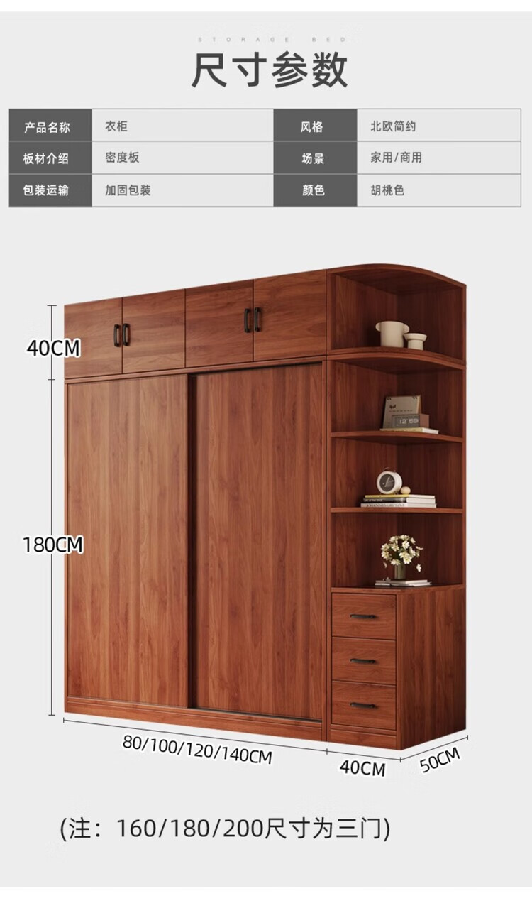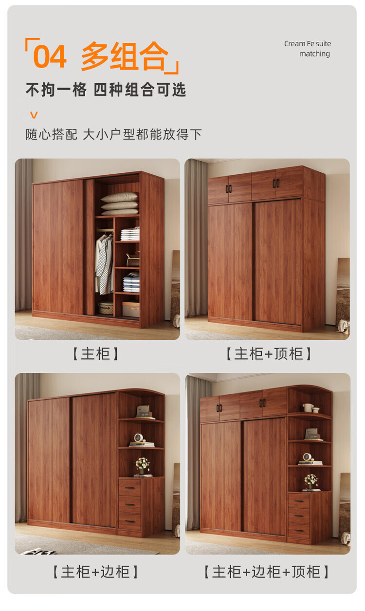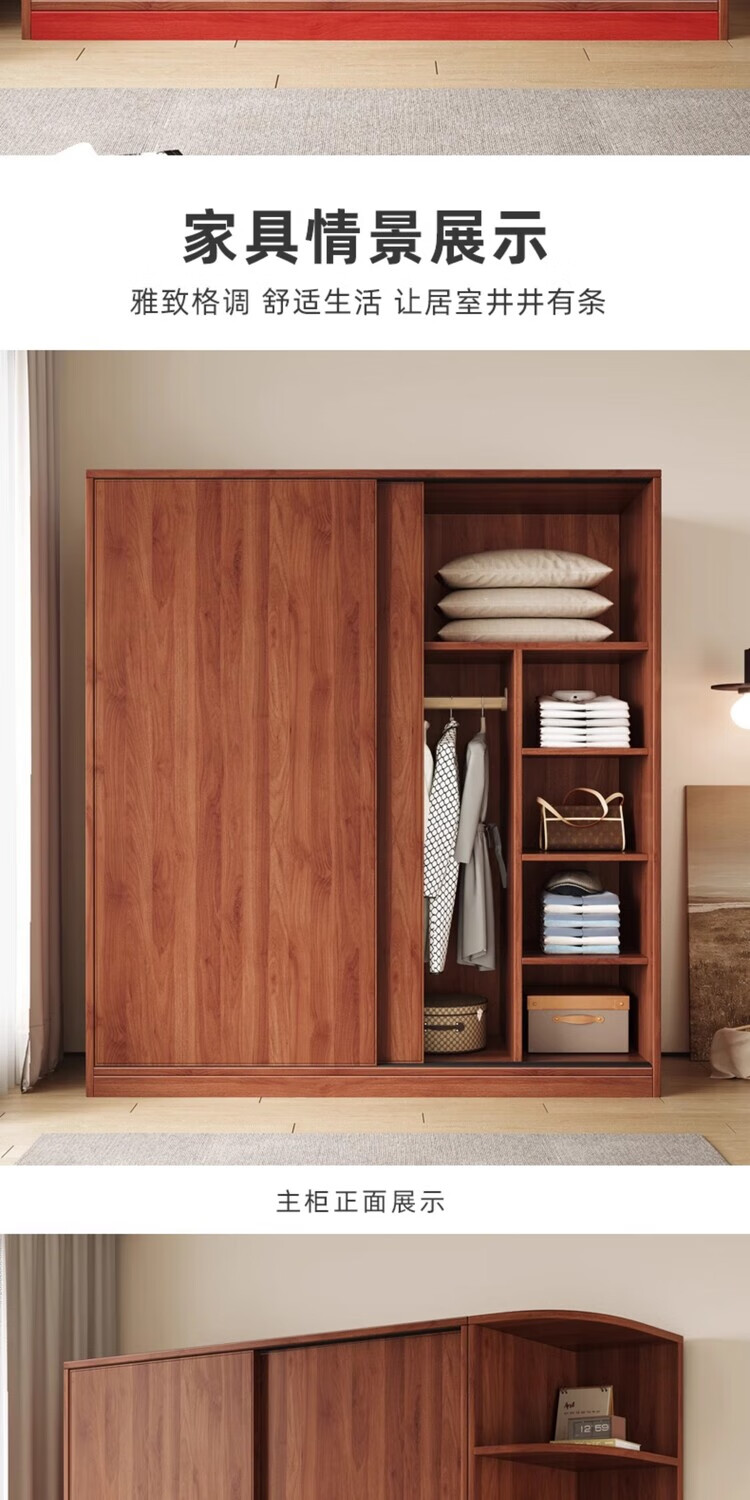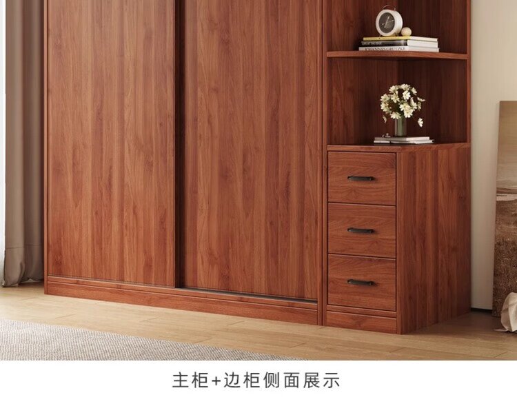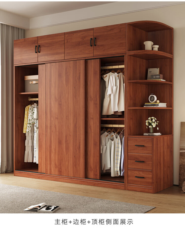 Santoba Wardrobe Home Bedroom Sliding Door Wardrobe Modern Simple Small Apartment Rental Storage Cabinet Children's Storage Cabinet 200*180*50 Three Door Main Cabinet + Side Cabinet 2 Doors Assembly