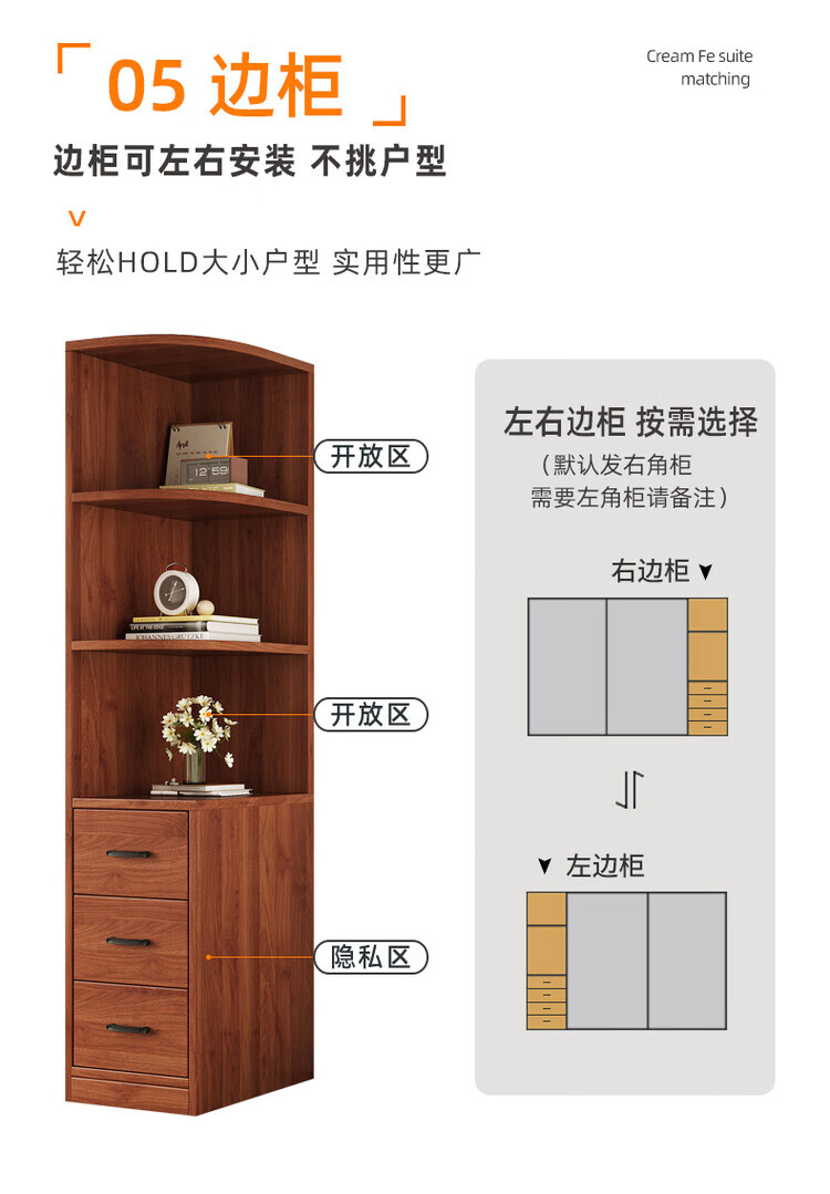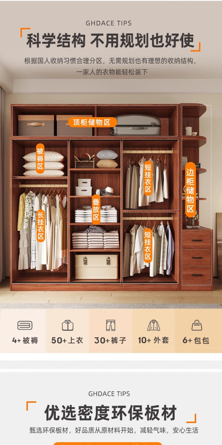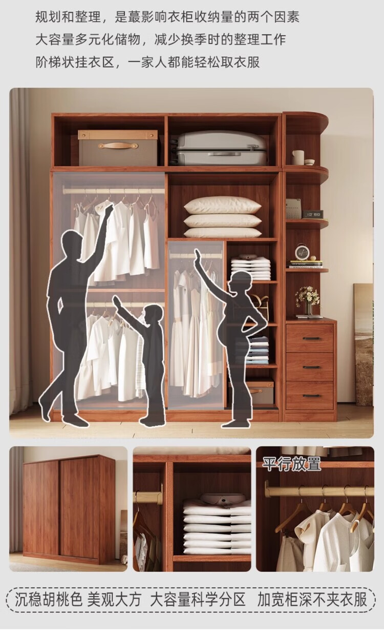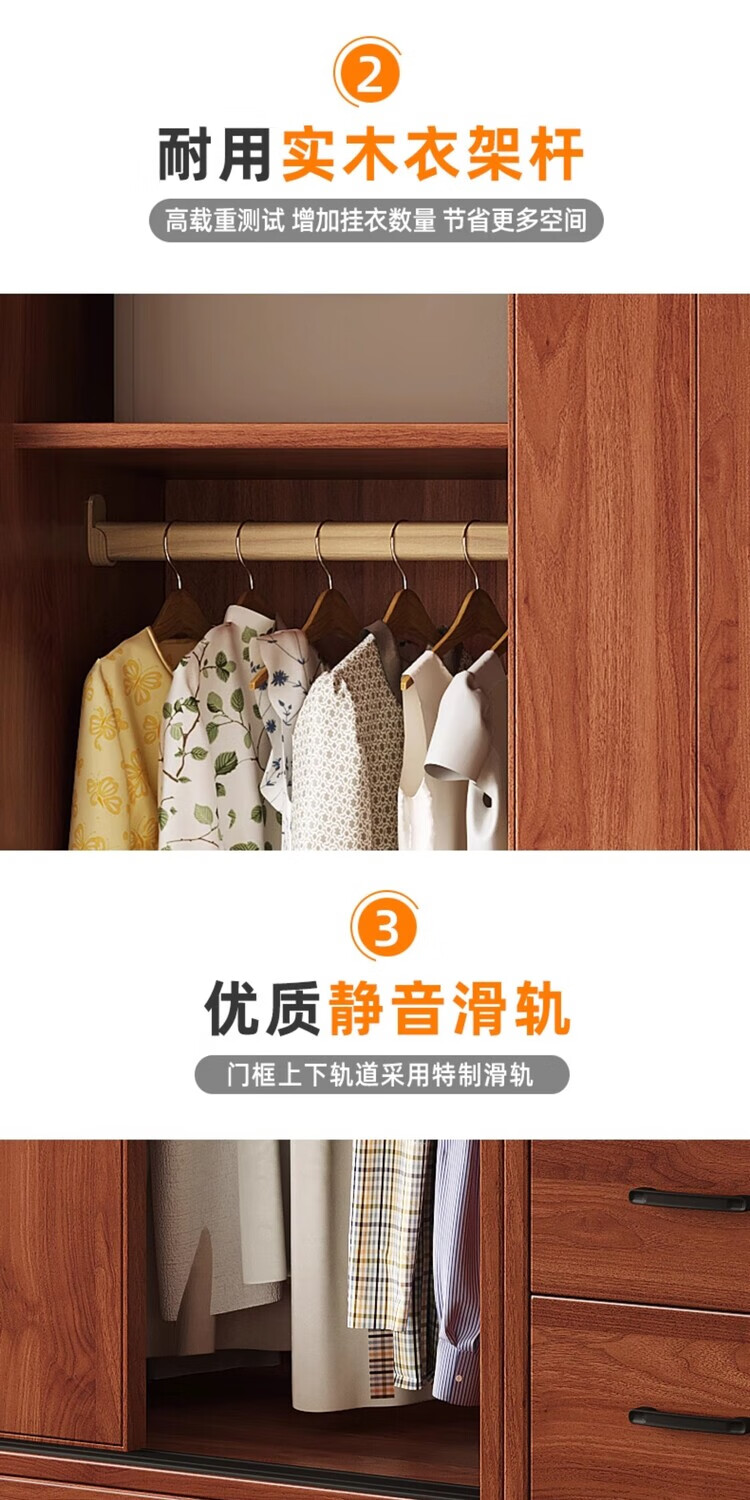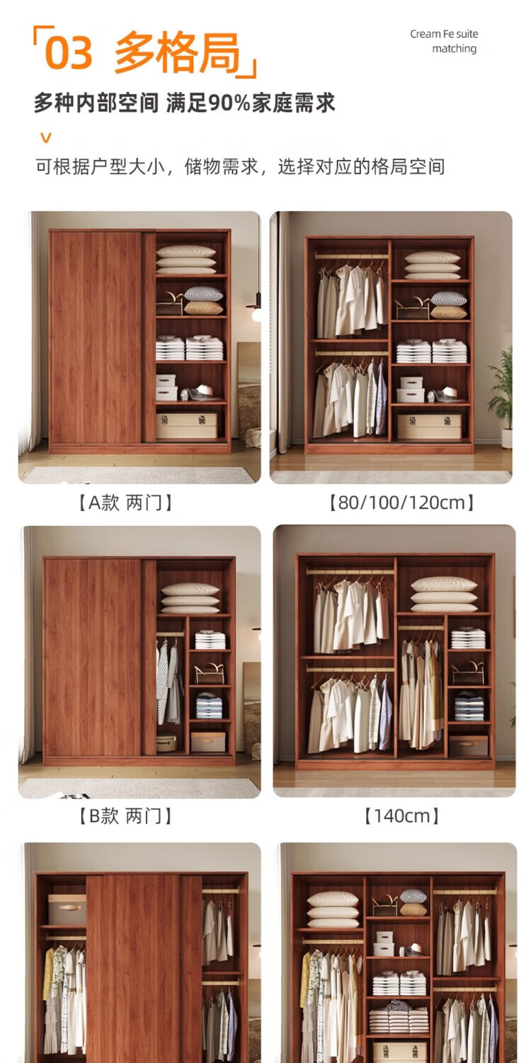 Santoba Wardrobe Home Bedroom Sliding Door Wardrobe Modern Simple Small Apartment Rental Storage Cabinet Children's Storage Cabinet 200*180*50 Three Door Main Cabinet + Side Cabinet 2 Doors Assembly