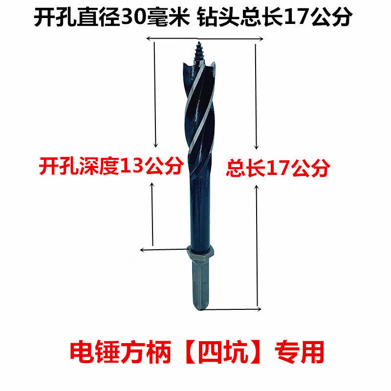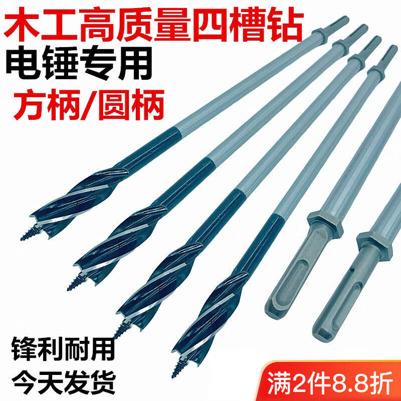 NAOISKEY electric hammer woodworking four-slot drill bit, square handle, four-pit extended drill bit, round handle, two-pit special extended woodworking branch drill, square handle, four-pit special, drill bit total length 30 cm, opening diameter 20 mm, high-quality woodworking four-slot drill
