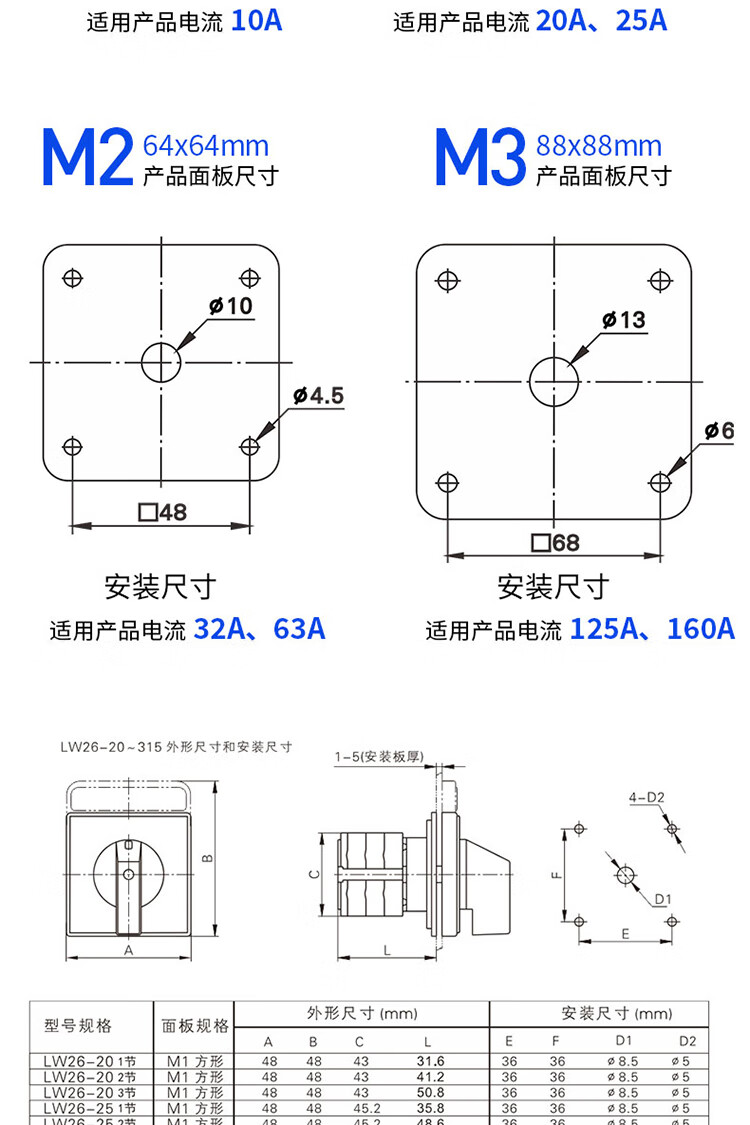 Changxin LW26-20 three-speed 32A dual power switching motor reverse rotation on-off 63A transfer switch three-speed (1-0-2) 8 sections x 315A