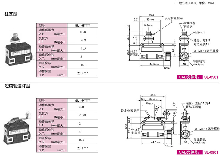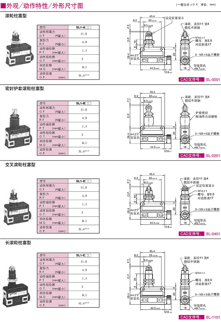 Micro travel limit switch roller SL1-A/SL1-D/SL1-H/SL1-P/E/B SL1-A