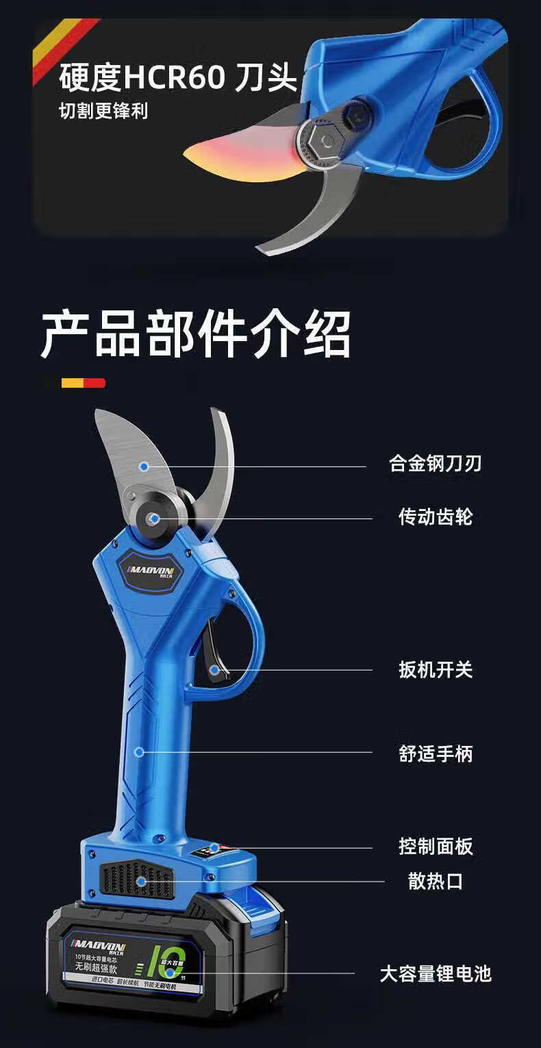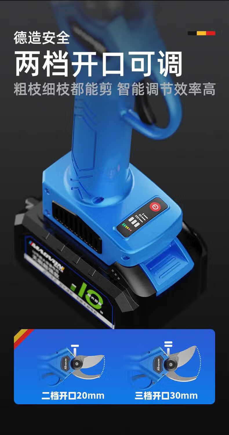 Miaoyou electric pruning shears, rechargeable multi-functional garden pruners, fruit tree pruning, thick branches, lithium battery, extra large LCD model + dual power to send 2 blades + plastic box