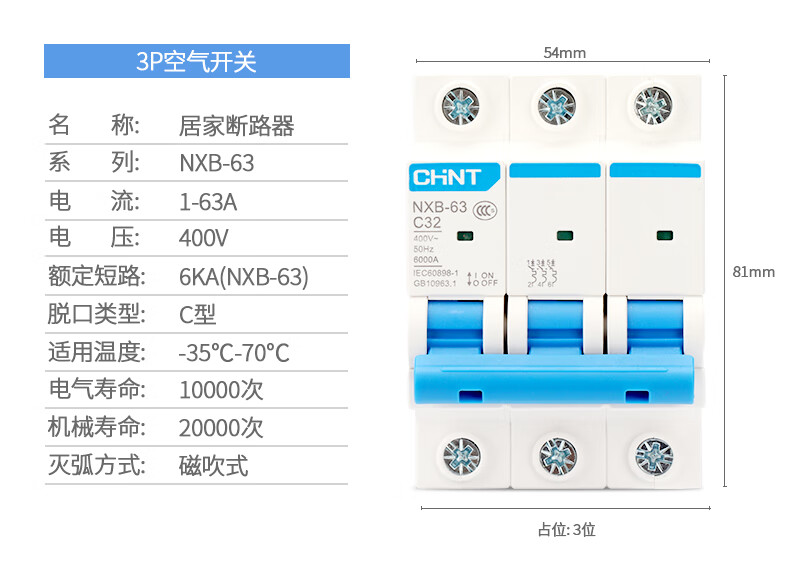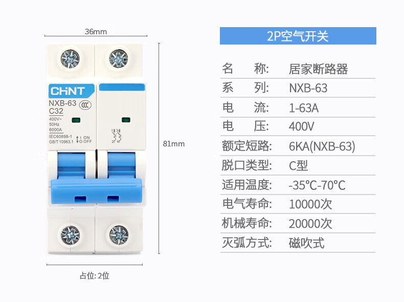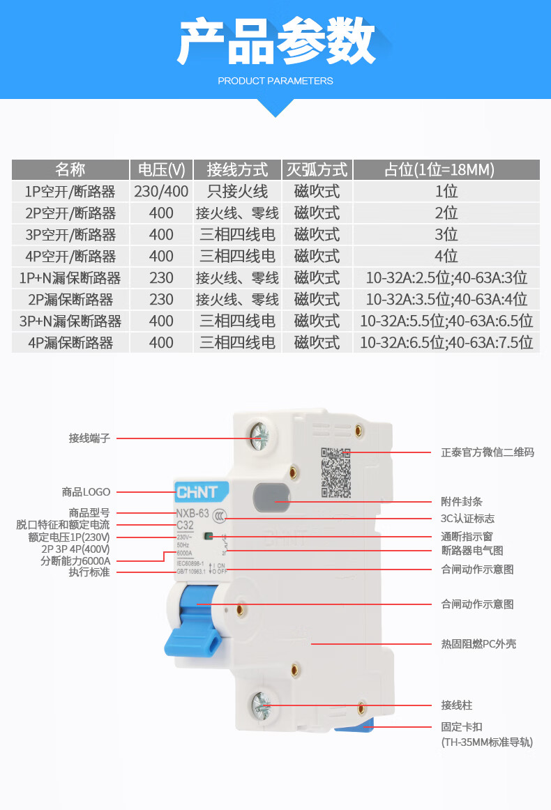 Chint small circuit breaker micro-break air switch 1234P10A16A20A32A40A63A Kunlun 100A 4p