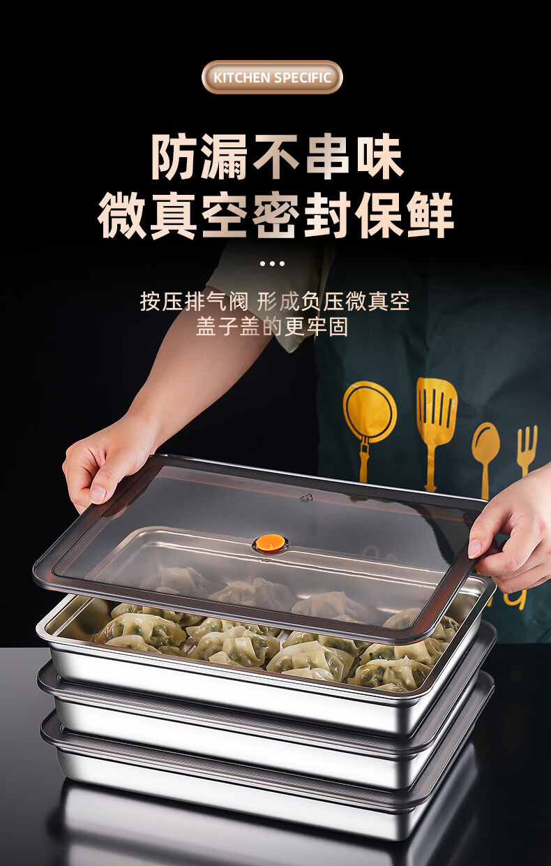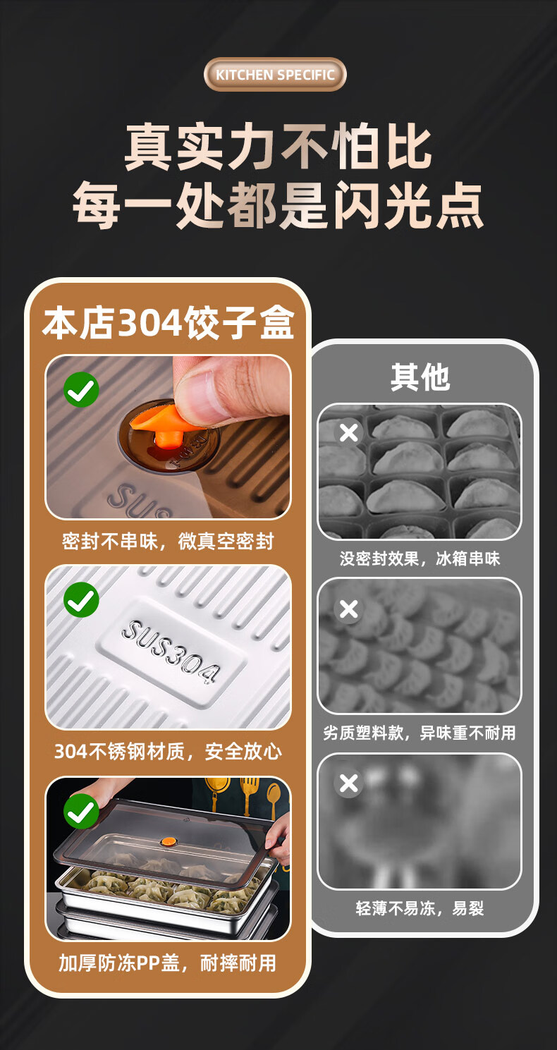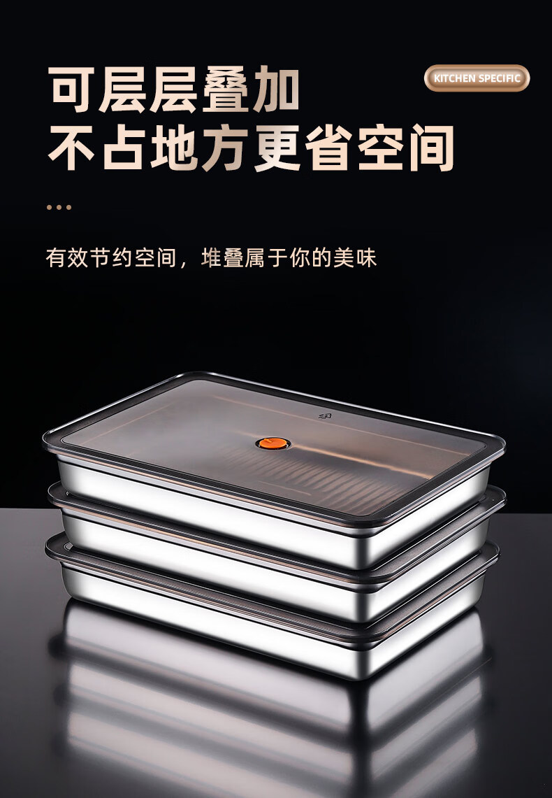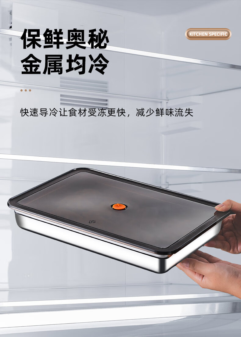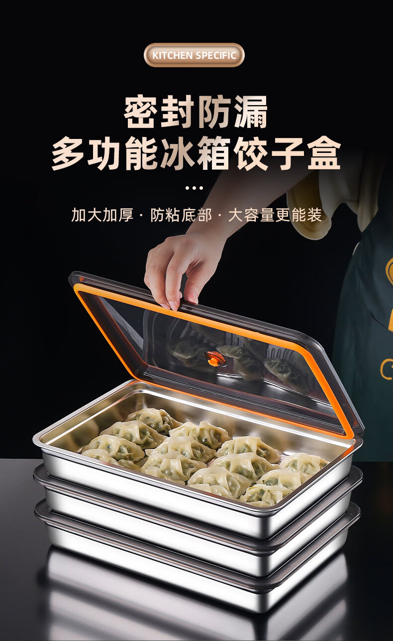 MOZHOU German quality 304 stainless steel dumpling box refrigerator special crisper frozen sealed food grade large capacity 304 stainless steel dumpling box 1 pack