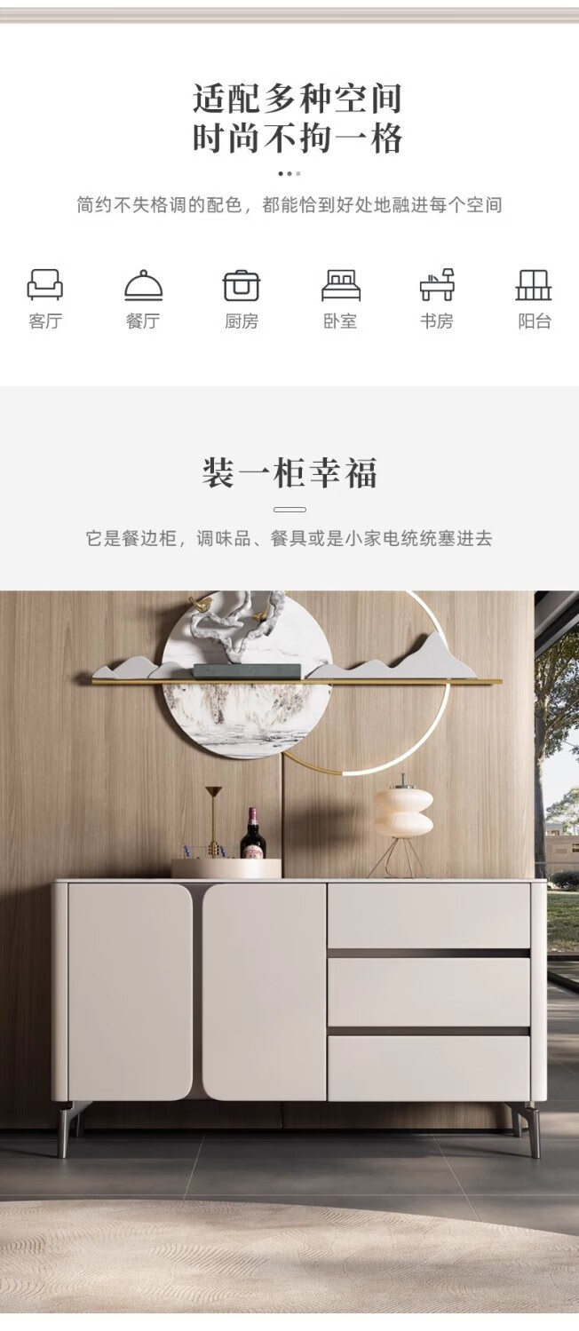 Shilong light luxury slate sideboard solid wood new thin storage cabinet bedroom storage drawer multi-functional living room wine cabinet 1.2m sideboard