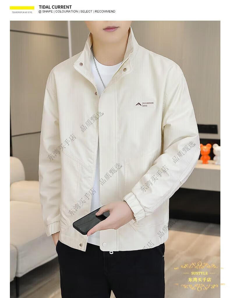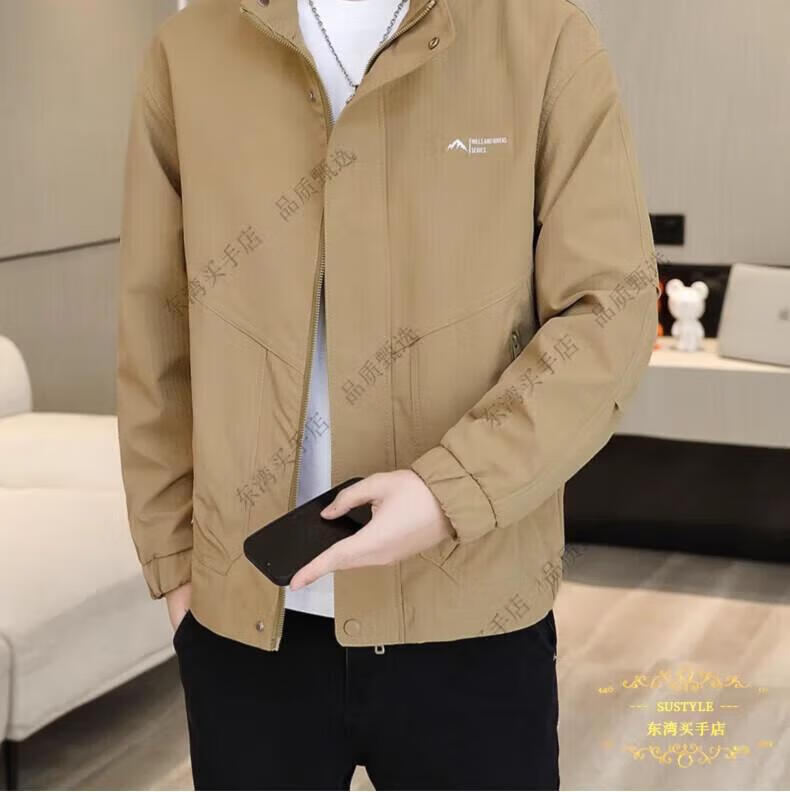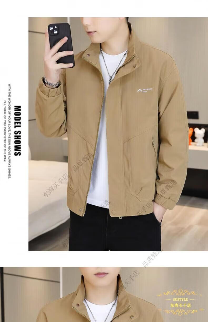 SUSTYLE high-end luxury men's high-end jacket men's 2025 spring and autumn new fashion simple trendy middle-aged jacket men's khaki plus velvet 3XL recommended 165-180 pounds