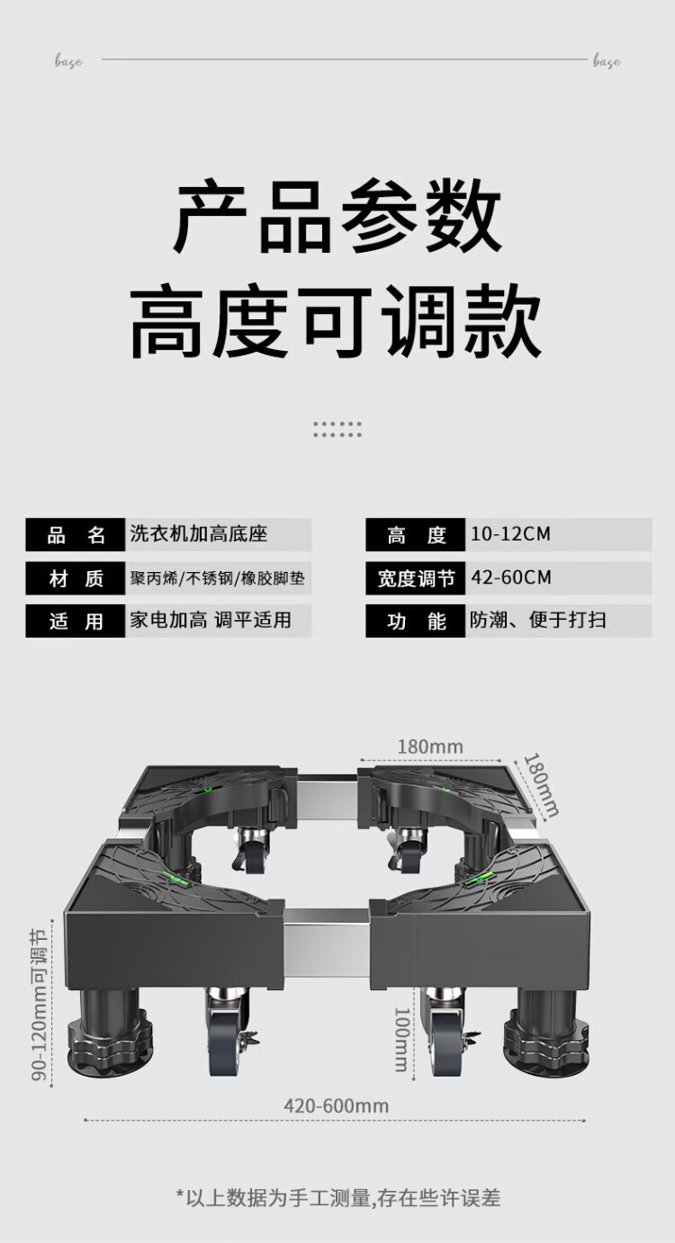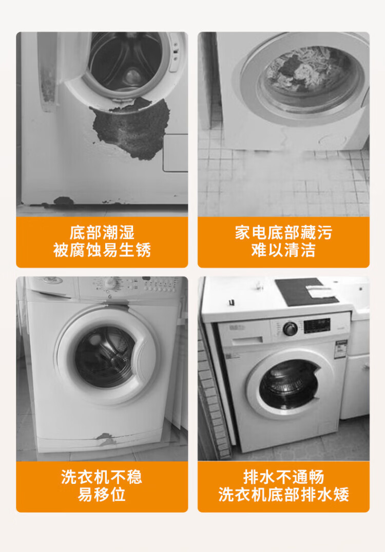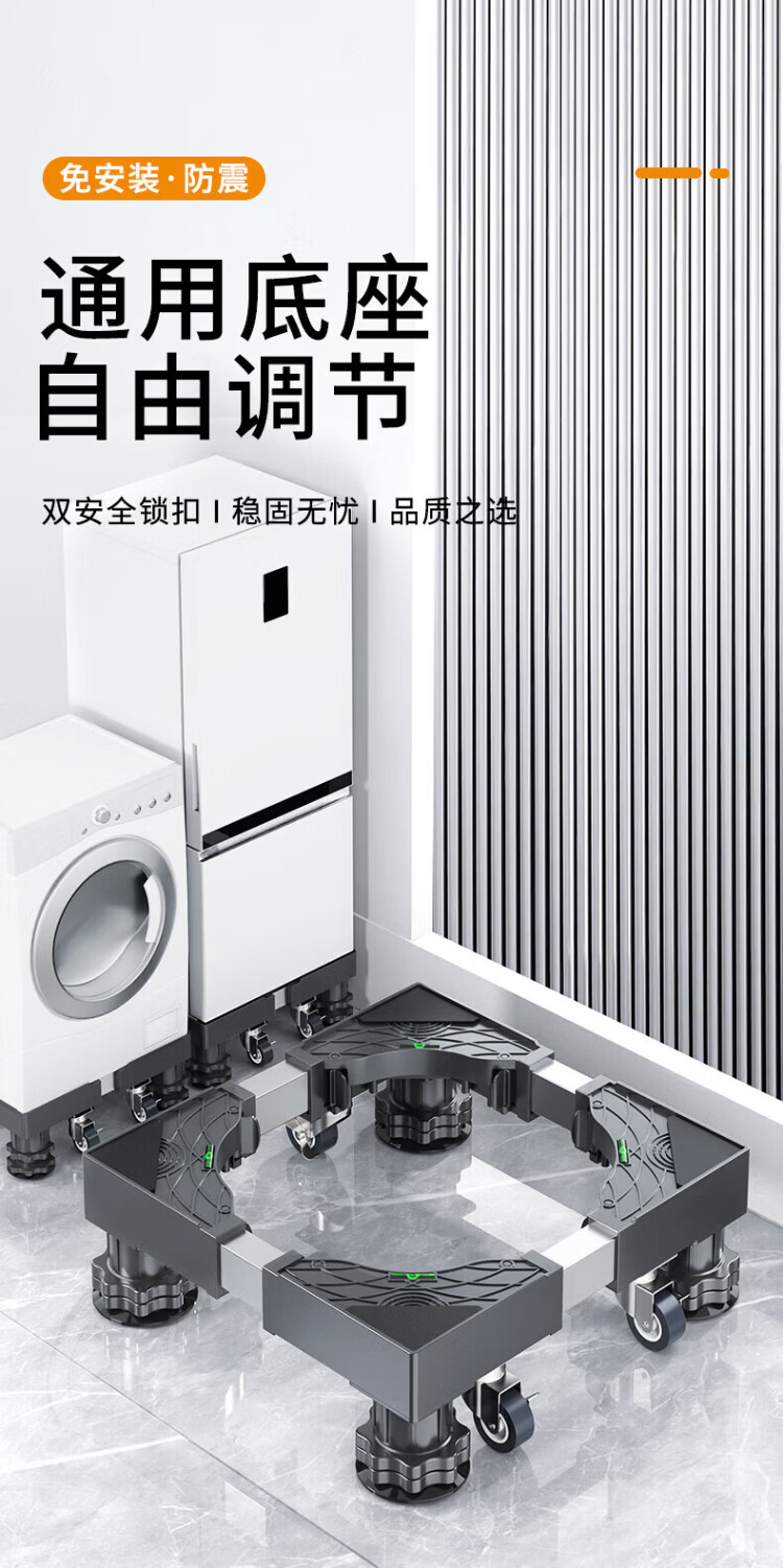 Jiangwutong washing machine base mobile bracket pad plus heightening drum impeller anti-slip and shockproof foot pad fixed base air conditioner refrigerator suitable for Little Swan Midea Haier Universal Black King Kong 4 large feet