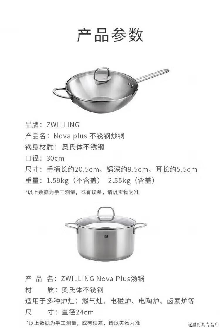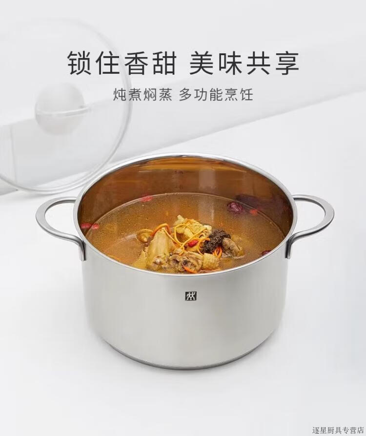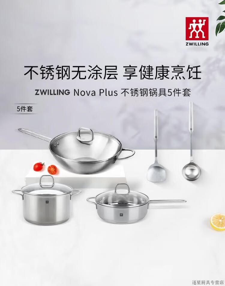 ZWILLING German Zwilling stainless steel pot set stainless steel wok frying pan soup pot combination household Chinese wok stainless steel frying soup pot five-piece set