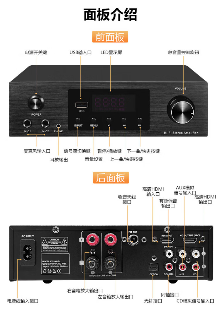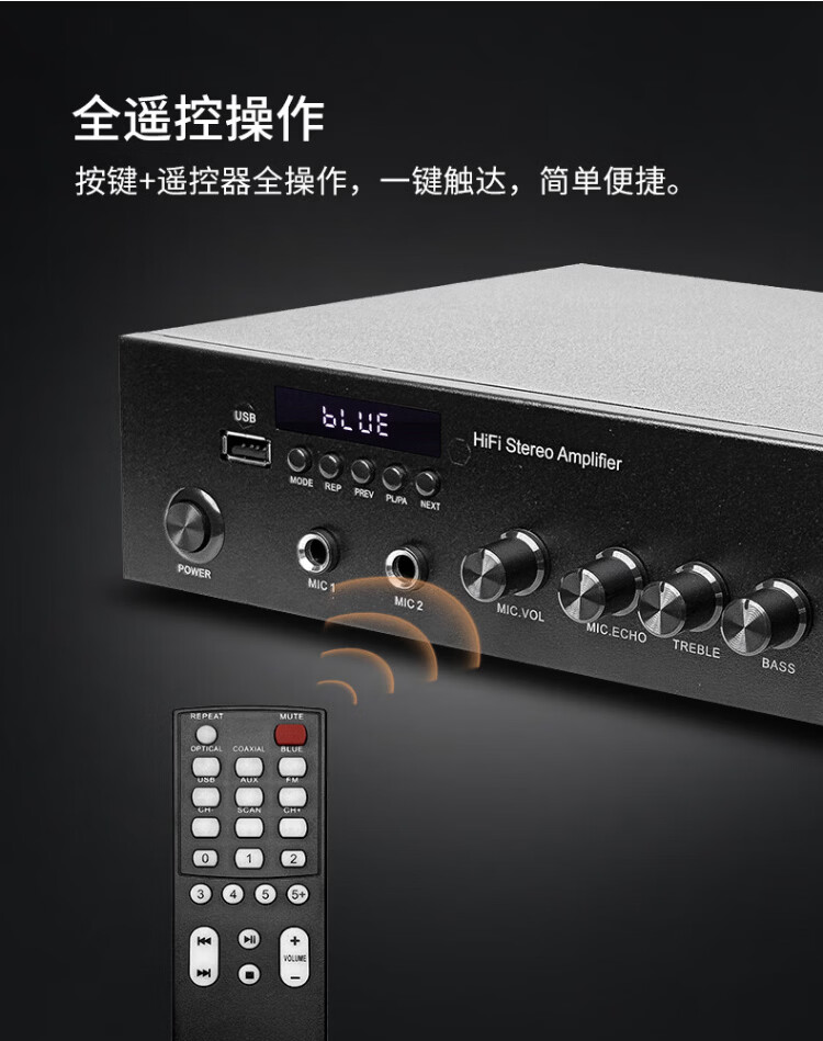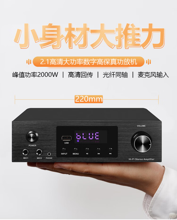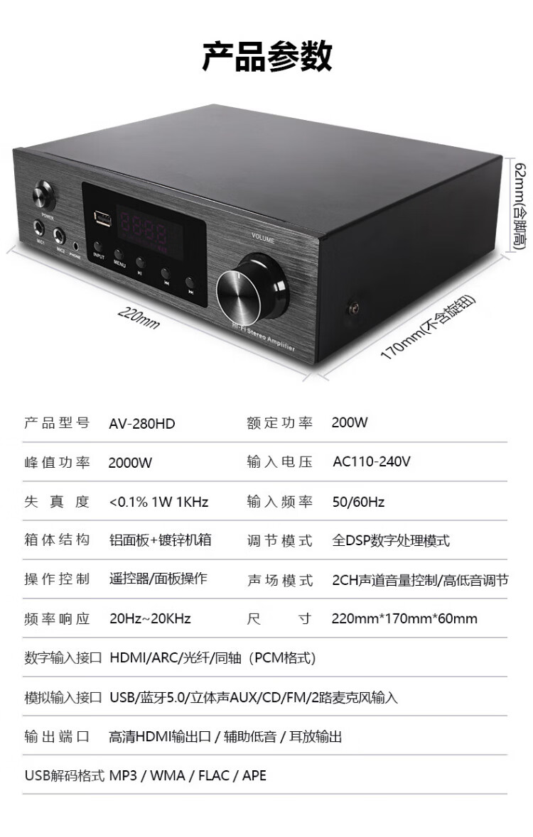Haoyun Home Theater 2.1 Digital Amplifier Speaker Supports Optical Fiber Coaxial Bluetooth Karaoke KTV Amplifier Bluetooth High-Power DSP High-Fidelity Amplifier Audio 280 Amplifier (SF Express)