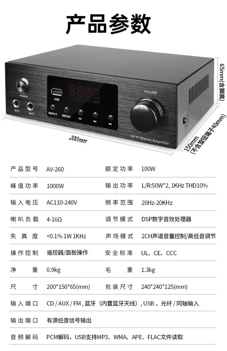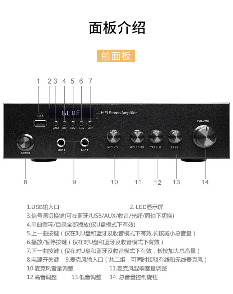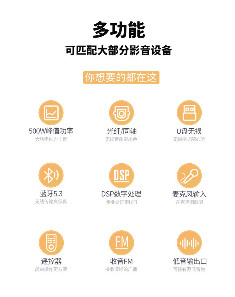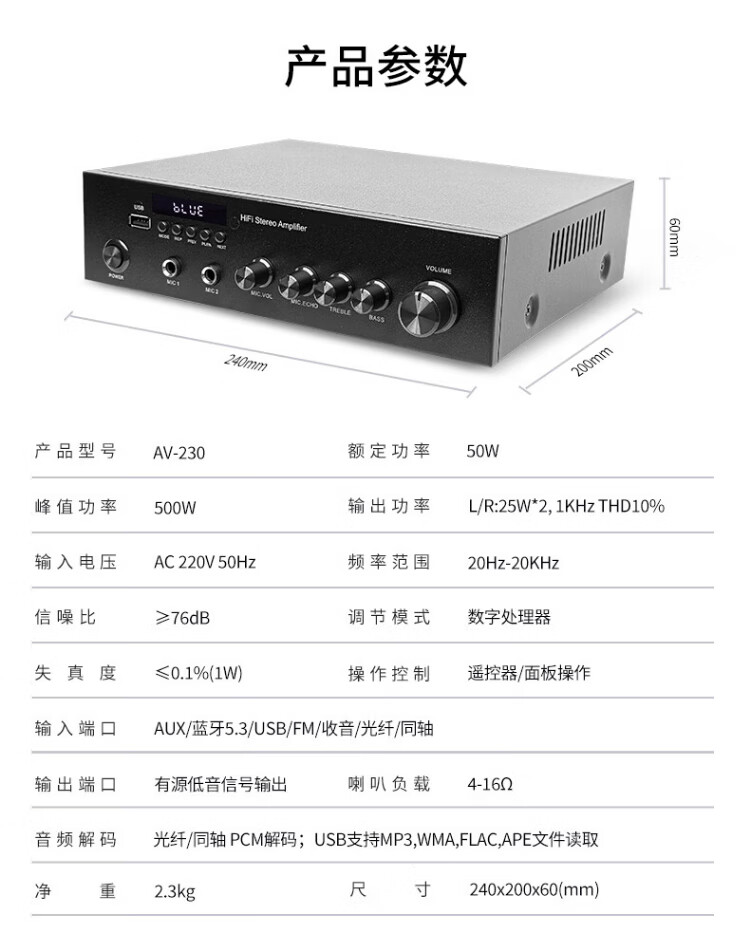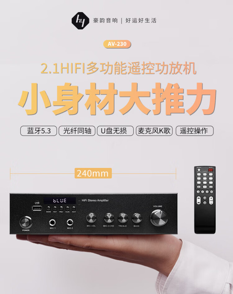 Haoyun Home Theater 2.1 Digital Amplifier Speaker Supports Optical Fiber Coaxial Bluetooth Karaoke KTV Amplifier Bluetooth High-Power DSP High-Fidelity Amplifier Audio 280 Amplifier (SF Express)