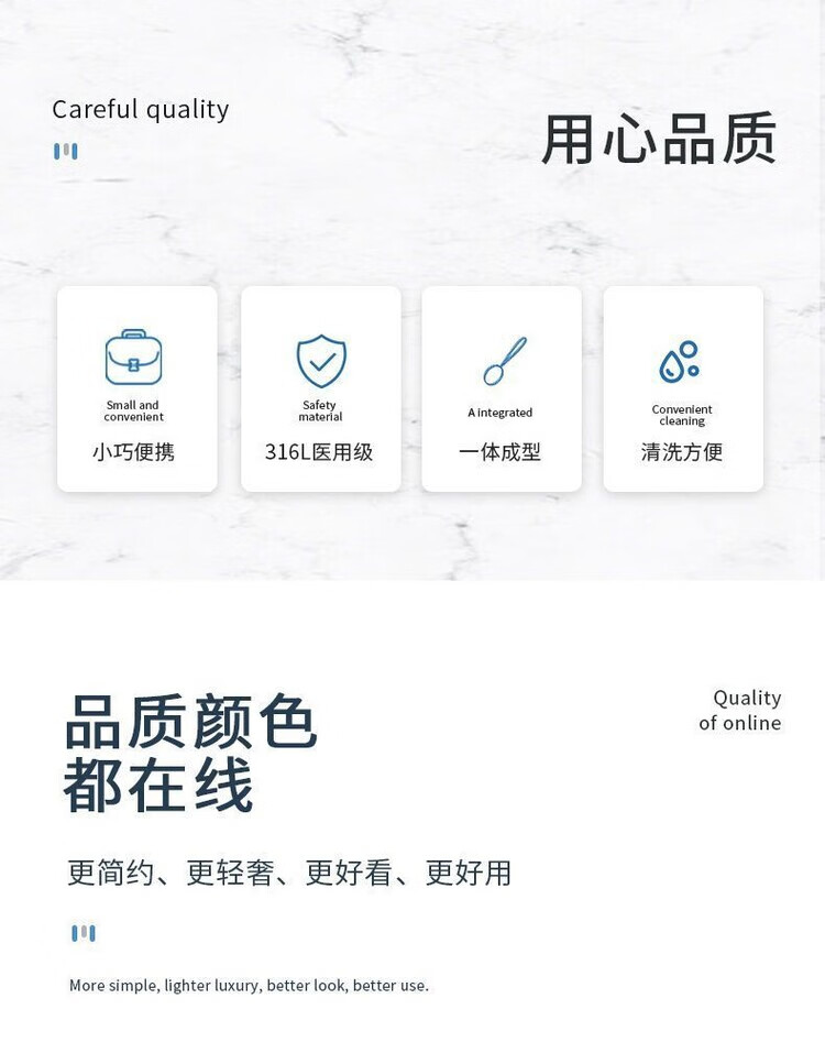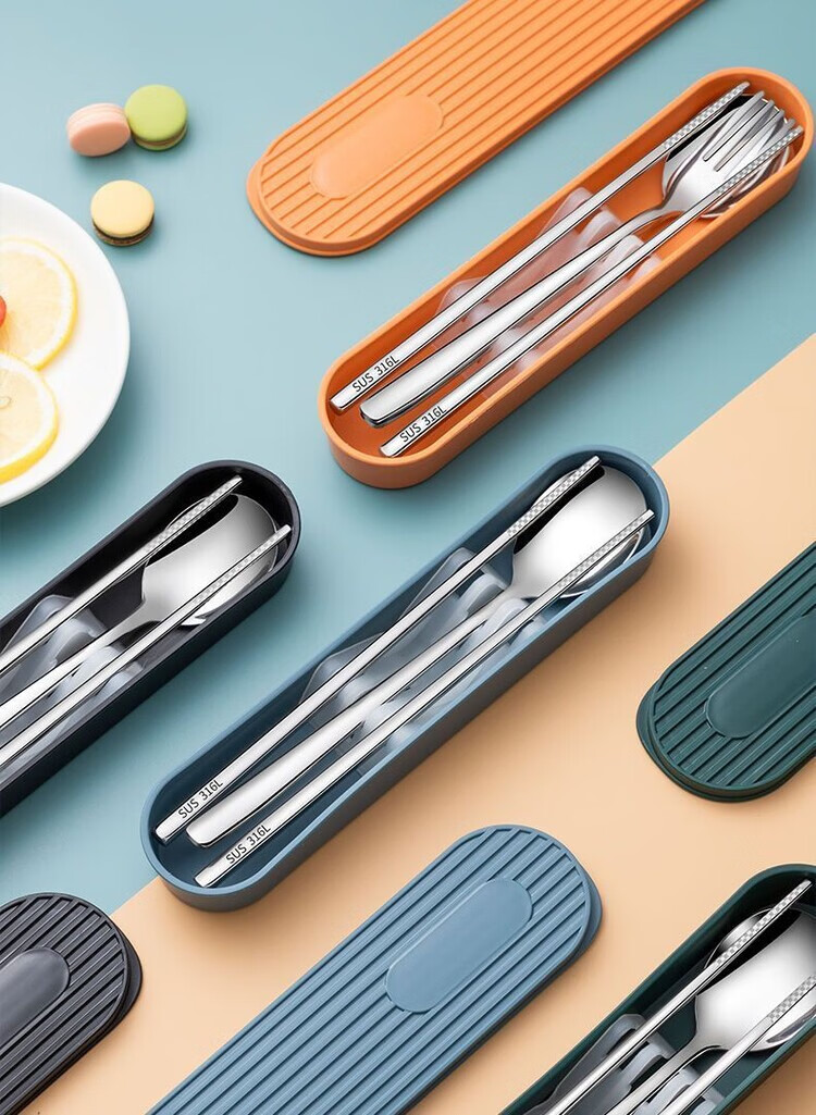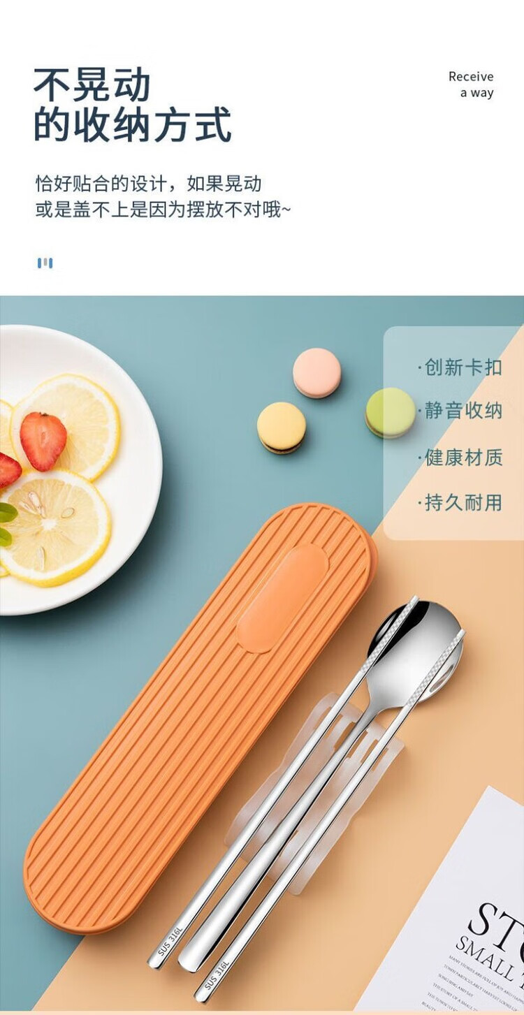 Raft core spoon 316 food grade adult universal 316L stainless steel chopsticks set three-piece set single portable meal orange 3-piece set + mesh bag