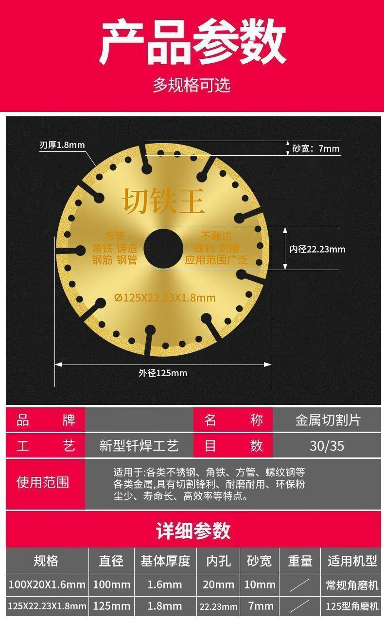 FANCYCHIC100 type angle grinder stainless steel metal cutting disc cast iron stone tile grinding angle grinder special cutting disc 100 type angle grinder special carbide cutting iron king 1 piece + 1 washer