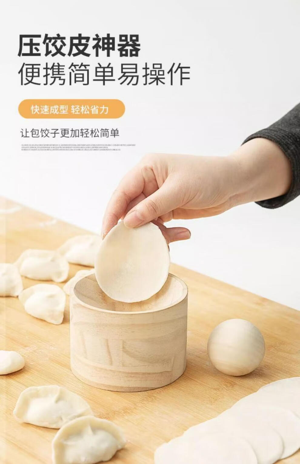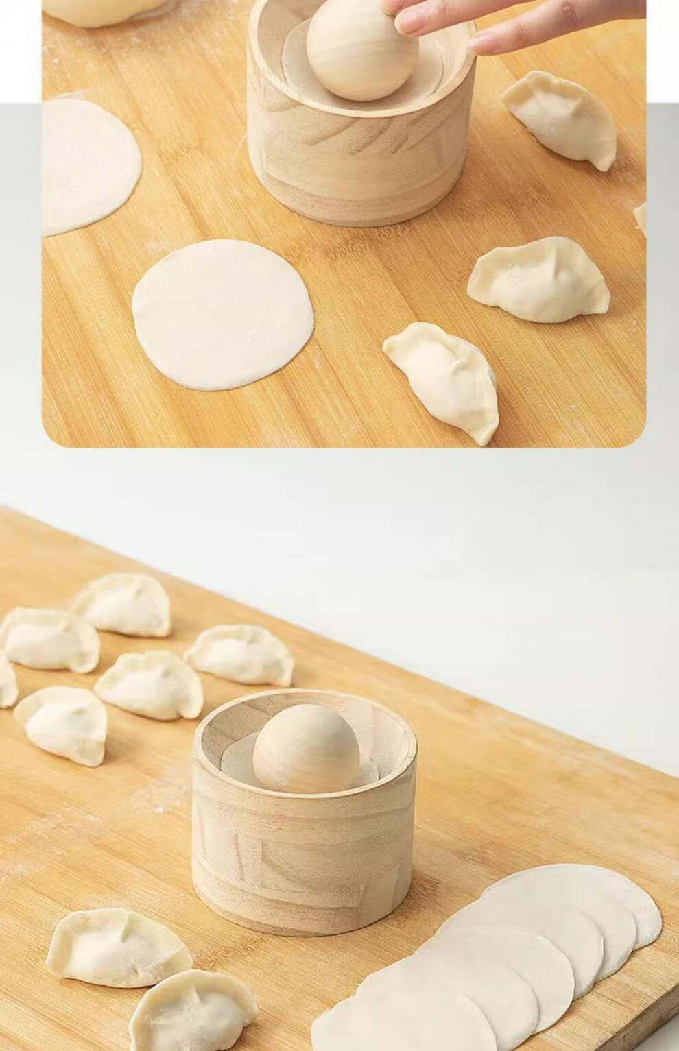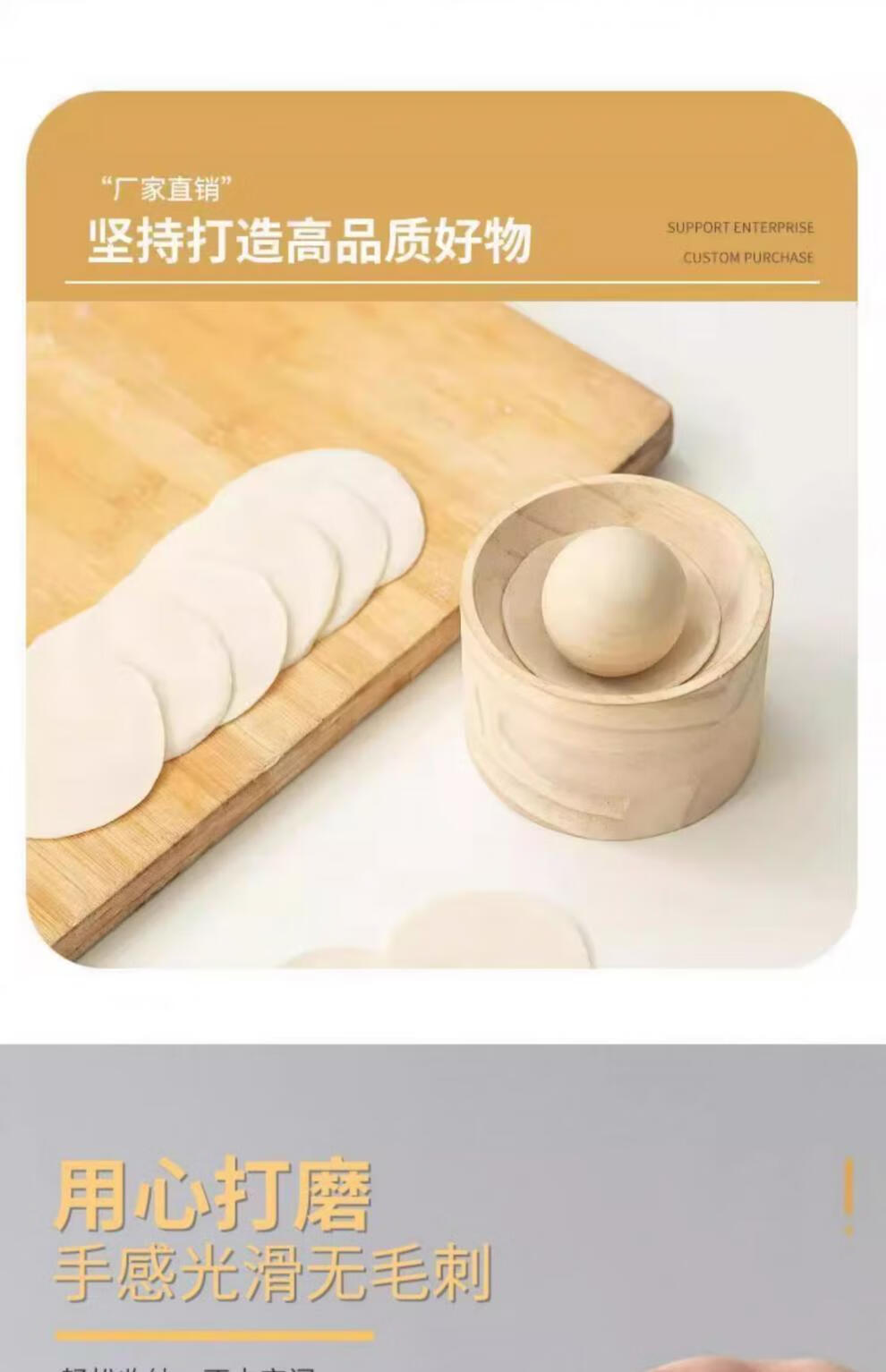 Du Zhunyu's new dumpling maker wooden round kitchen household rolling dumpling wrapper artifact mold with water-coated skin non-stick dumpling wrapper upgraded dumpling wrapper artifact 1 pack ball + base selected solid wood