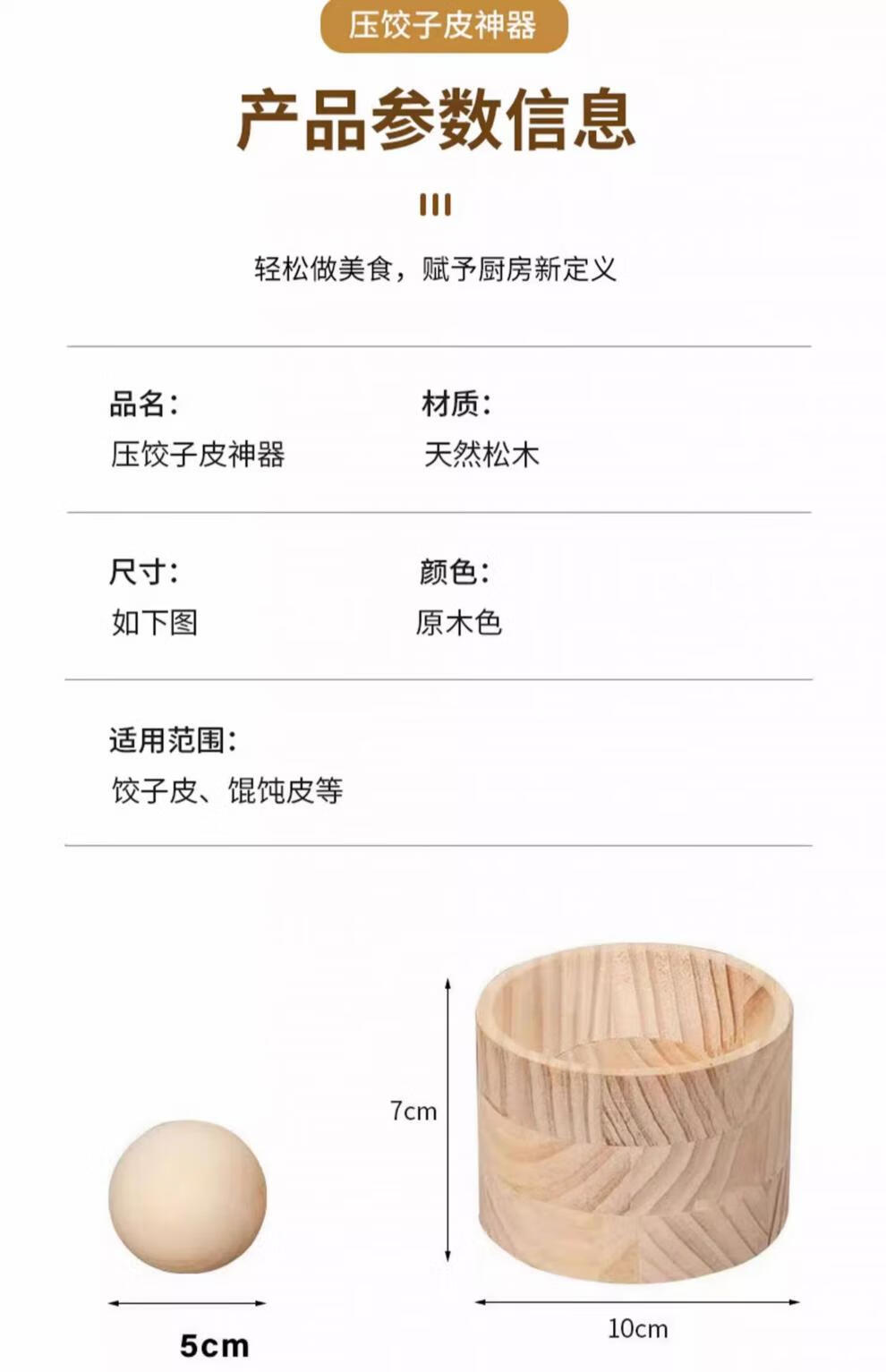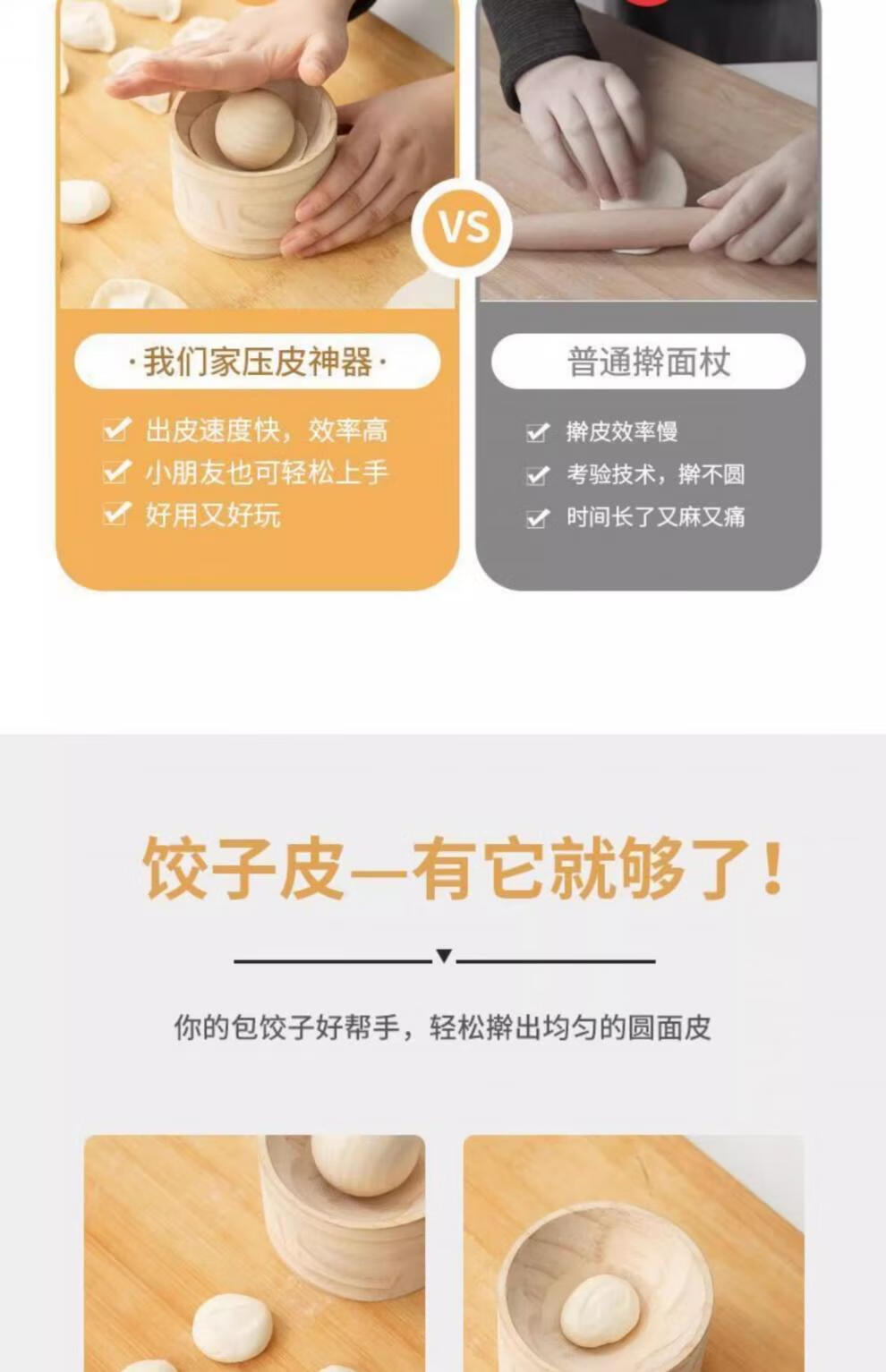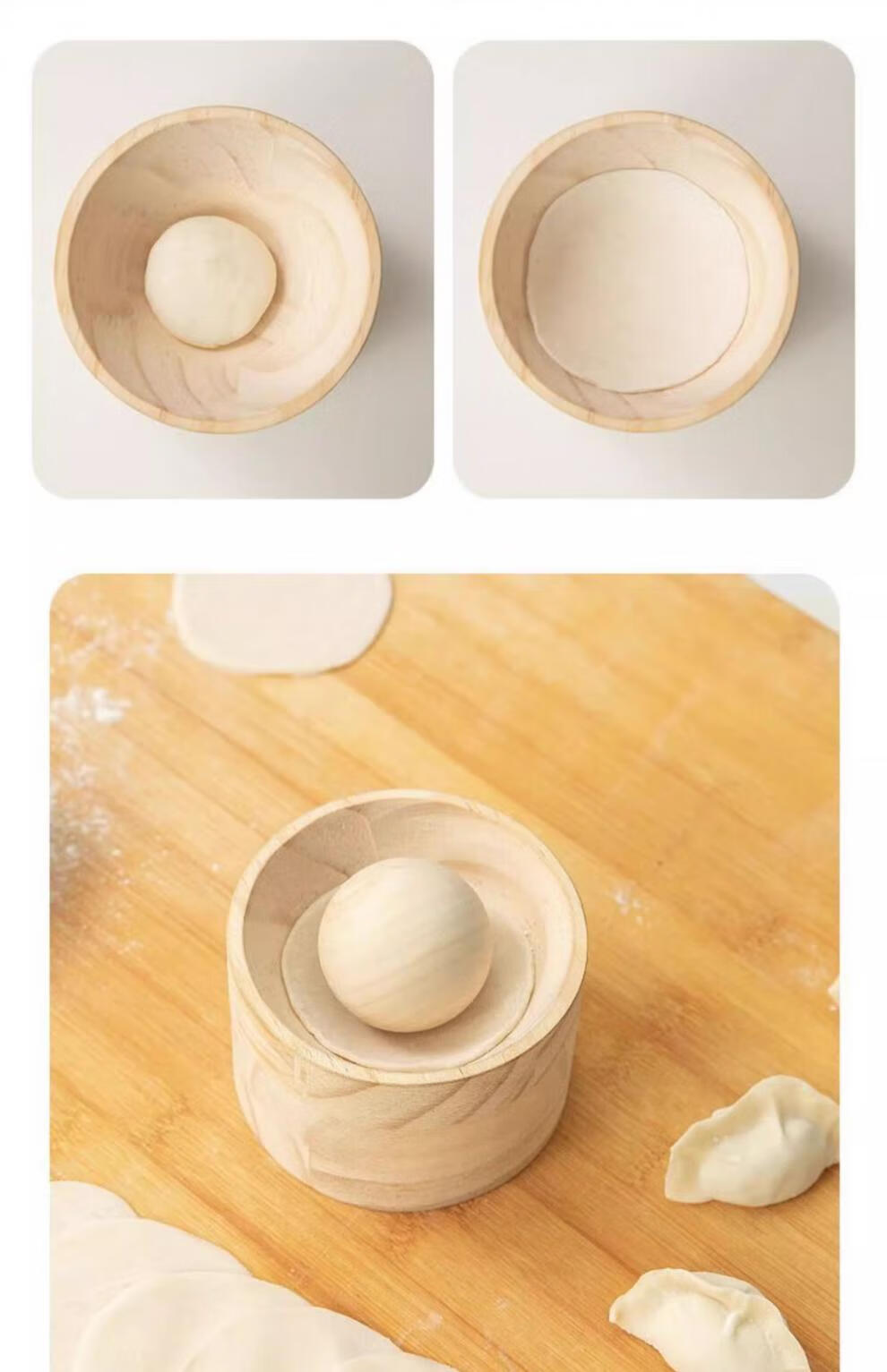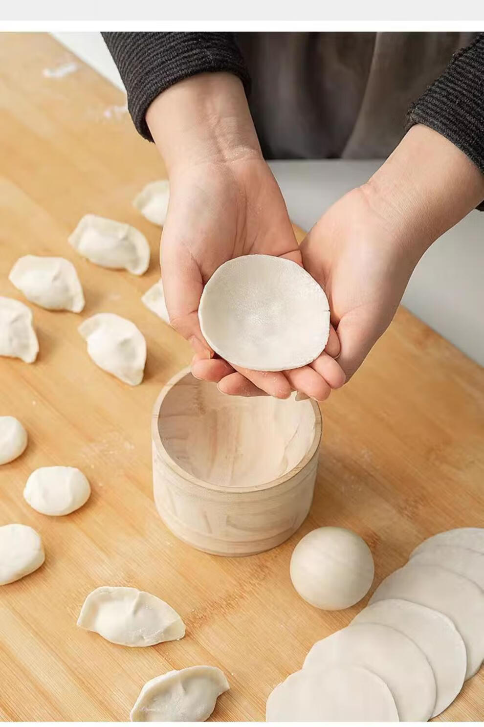 Du Zhunyu's new dumpling maker wooden round kitchen household rolling dumpling wrapper artifact mold with water-coated skin non-stick dumpling wrapper upgraded dumpling wrapper artifact 1 pack ball + base selected solid wood
