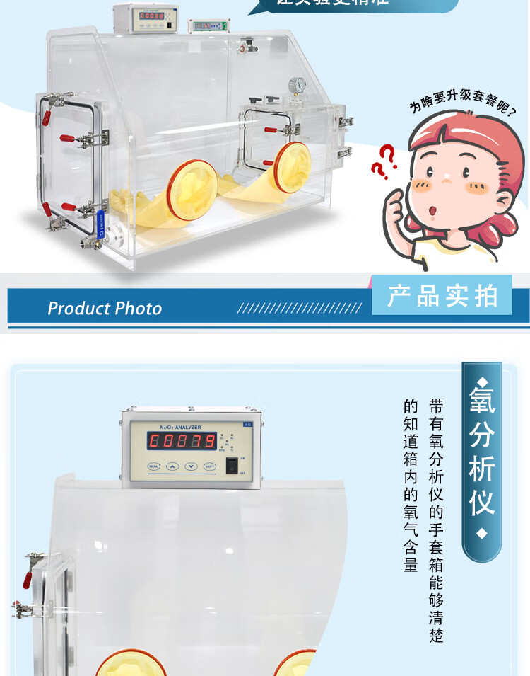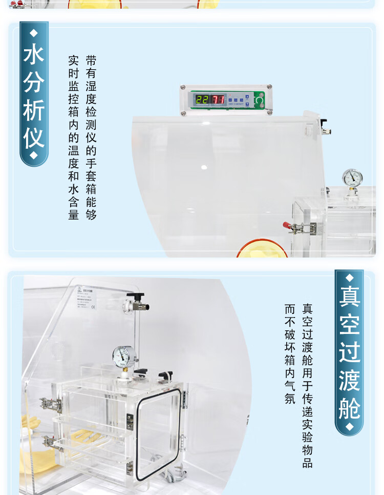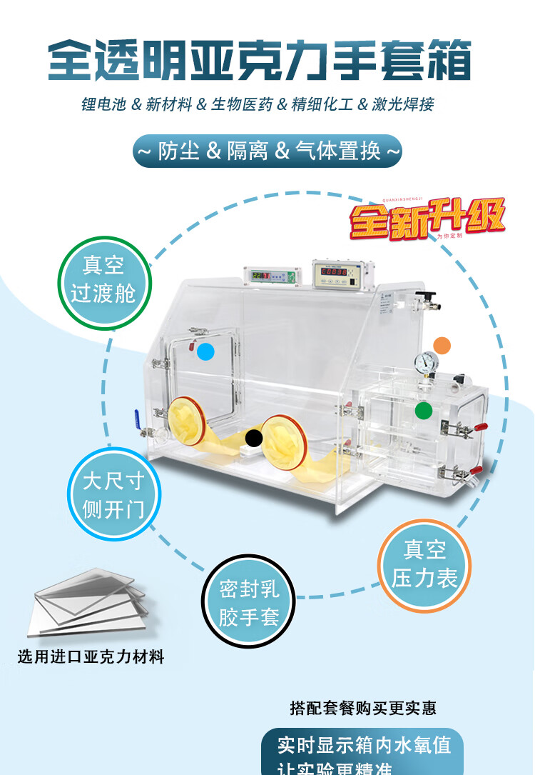 Midele Acrylic Glove Box Laboratory Vacuum Plexiglas Transparent Test Box Inert Gas Laboratory Glove Box Upgraded AGB-2B + Moisture Meter + Oxygen Analyzer + Vacuum Pump