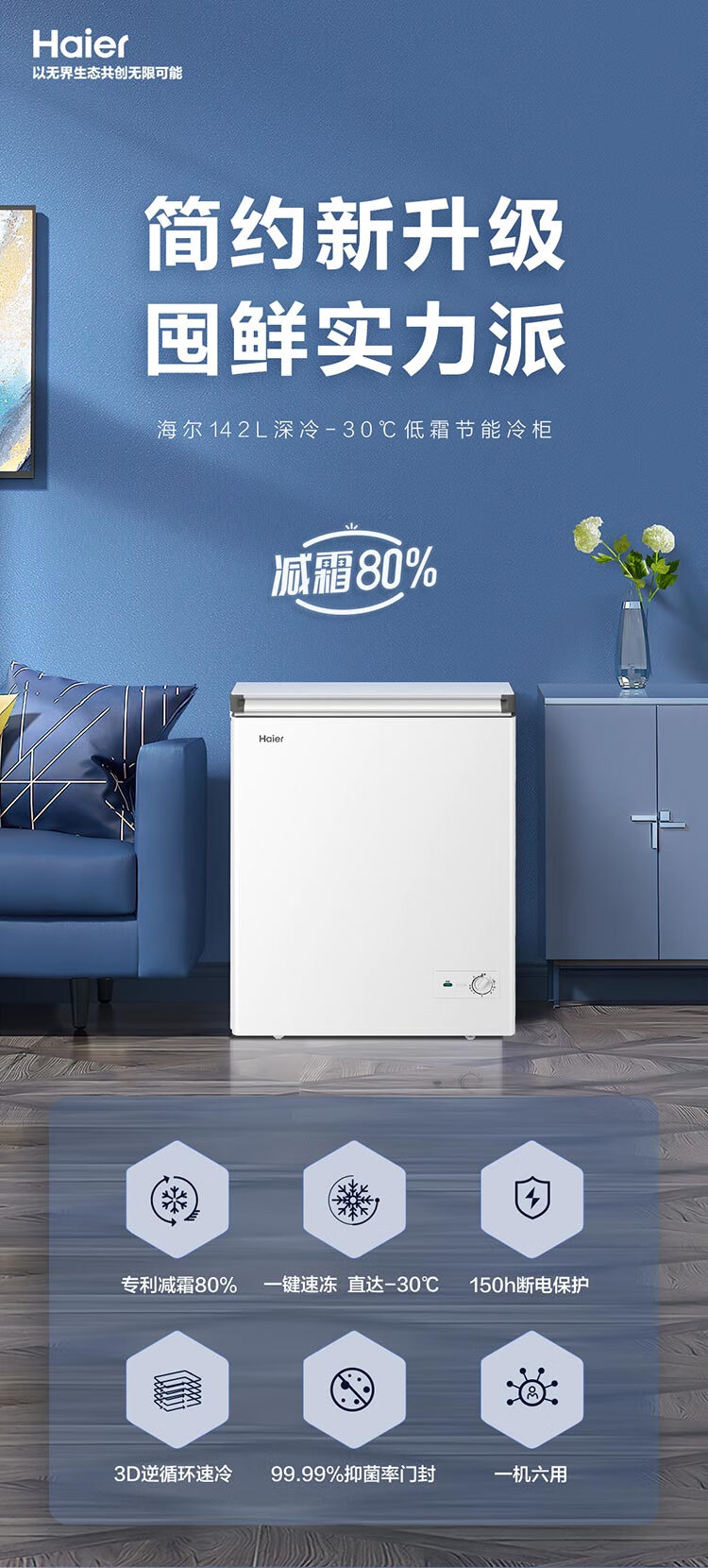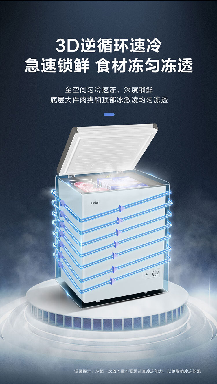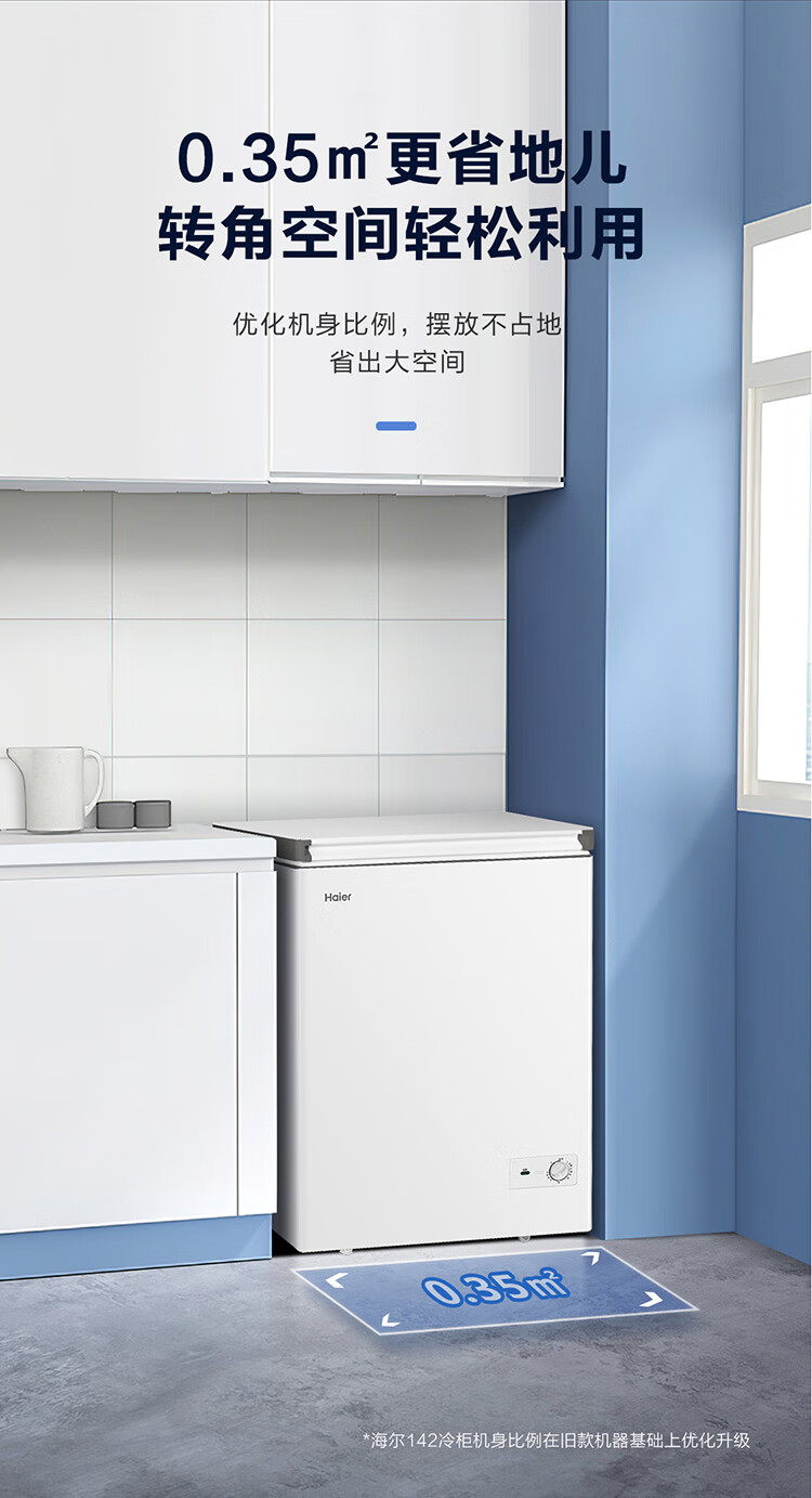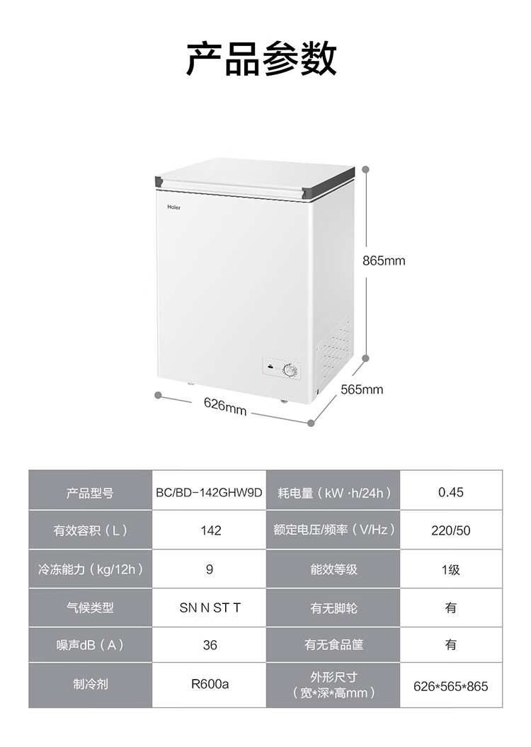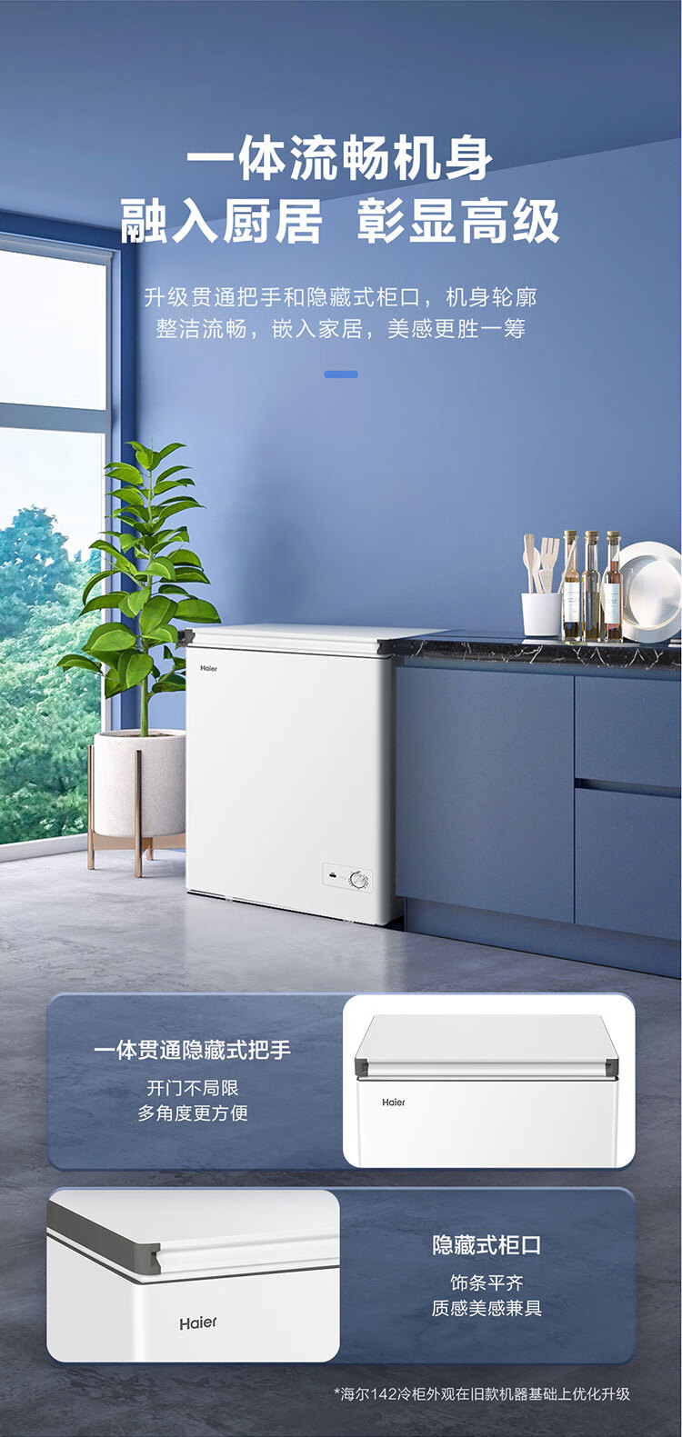 Haier Smart Freezer Home Dual Temperature 142L Freezer Commercial Small Home Refrigerator Level 1 Single Temperature Frost Reducing Energy Saving 0L BC/BD-142GHW9D142 White