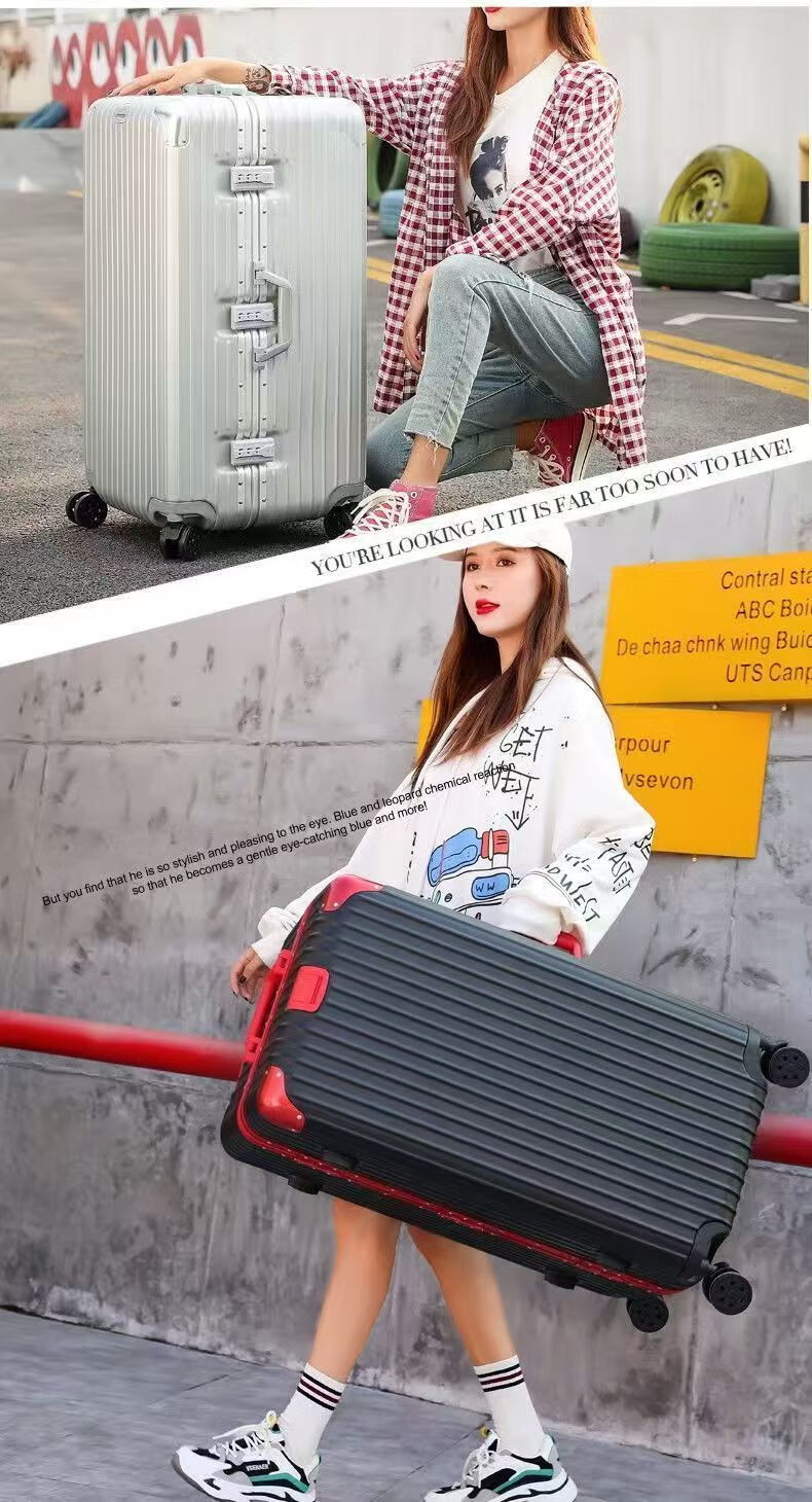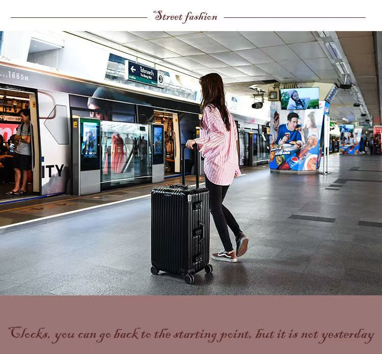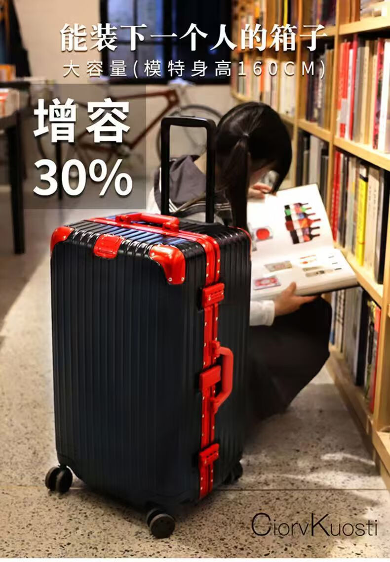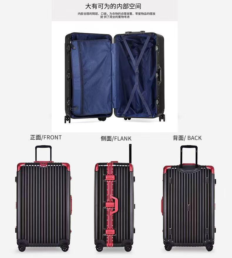 Large-capacity 100-inch aluminum frame, lightweight, boardable, durable, good-looking suitcase, essential for business trips, black temperament, upgraded thickened aluminum frame, 100-inch, extra-large capacity + thickened case