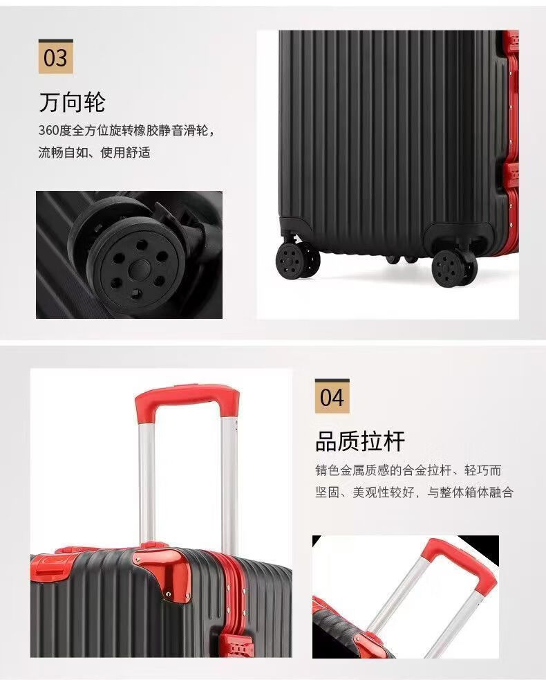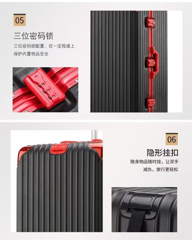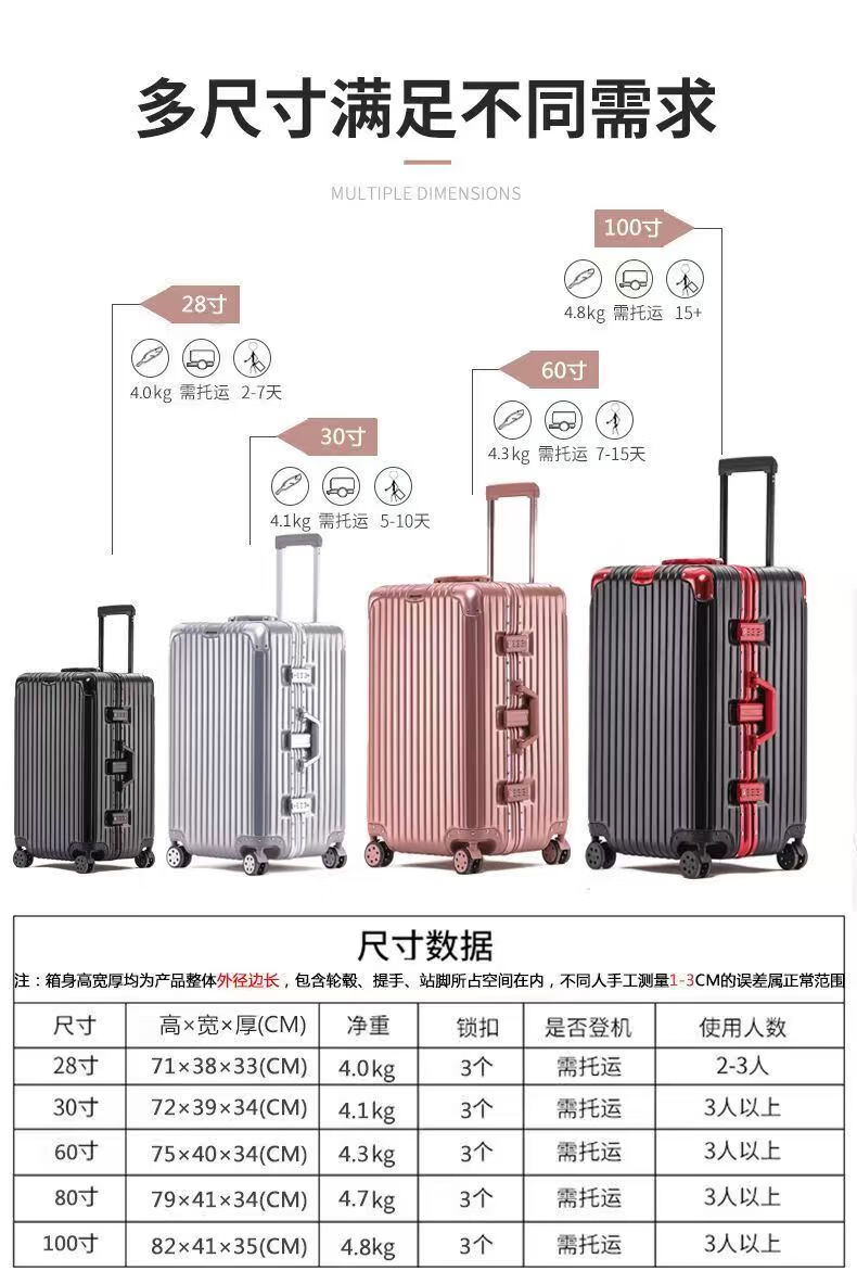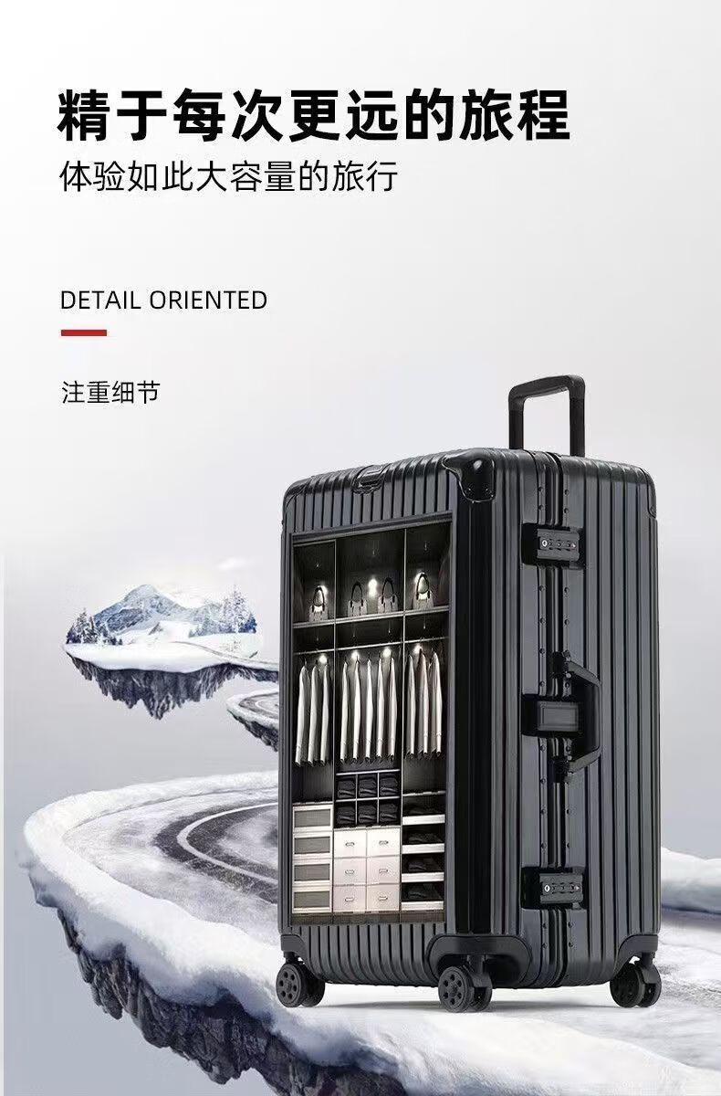 Large-capacity 100-inch aluminum frame, lightweight, boardable, durable, good-looking suitcase, essential for business trips, black temperament, upgraded thickened aluminum frame, 100-inch, extra-large capacity + thickened case