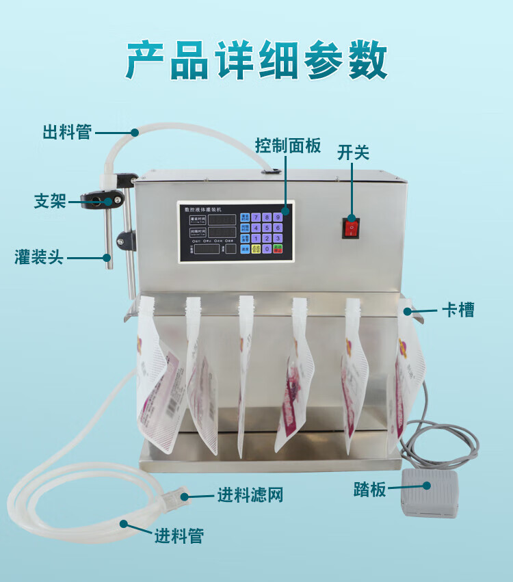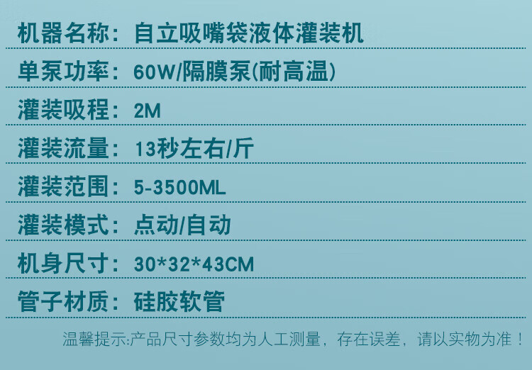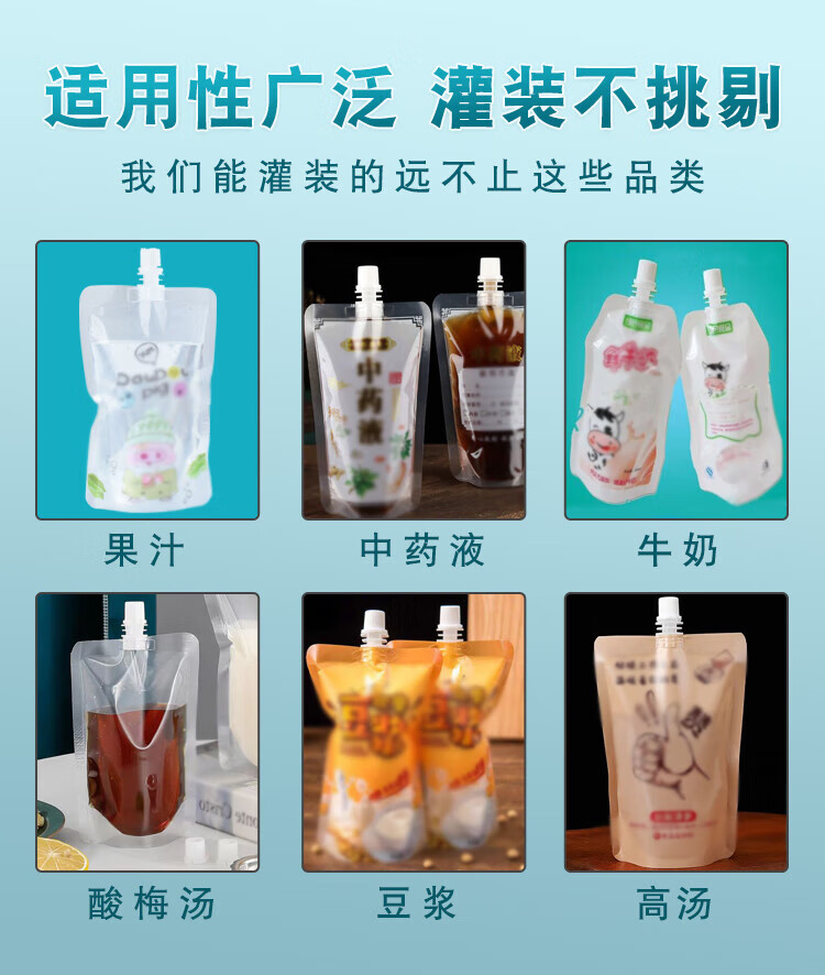 Stand-up bag liquid filling machine, high temperature resistant snail powder, beef soup, milk, soy milk, traditional Chinese medicine liquid, nozzle bag filling machine, ordinary (30W) nozzle bag filling machine