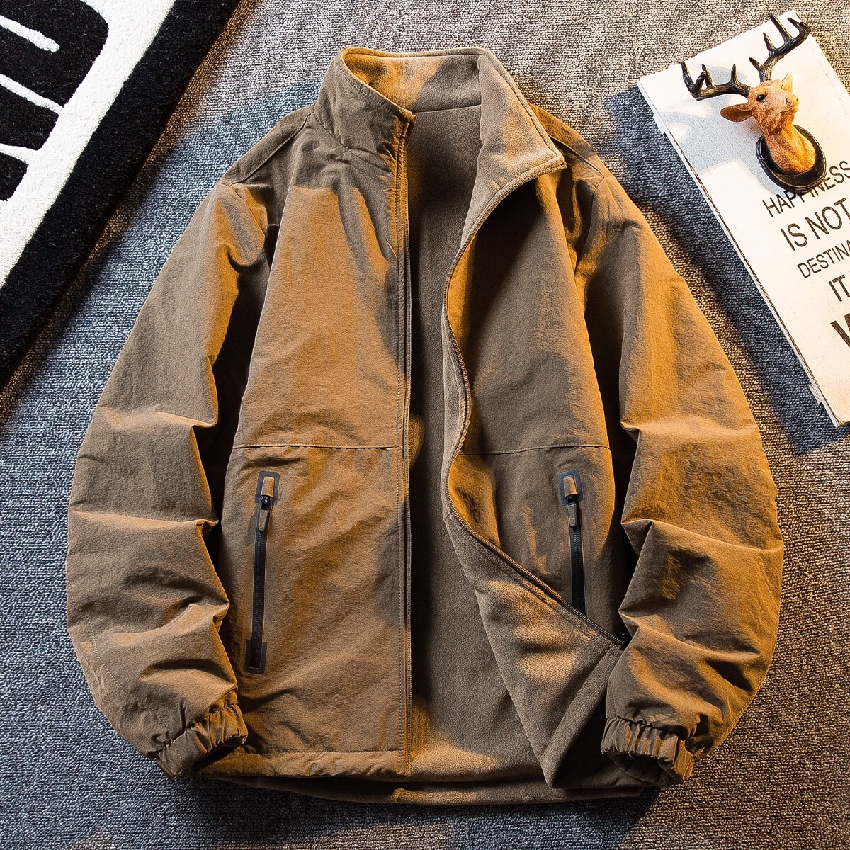 Kuraishi Kazuki's trendy brand double-sided velvet thickened jacket for men in autumn and winter new style versatile fashionable simple warm casual top black. The size is small. It is recommended to go up one size. XL. Recommend 131-145 pounds.