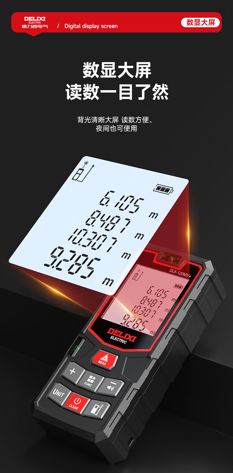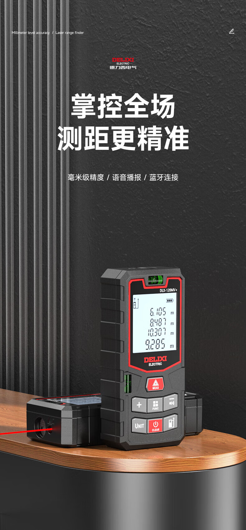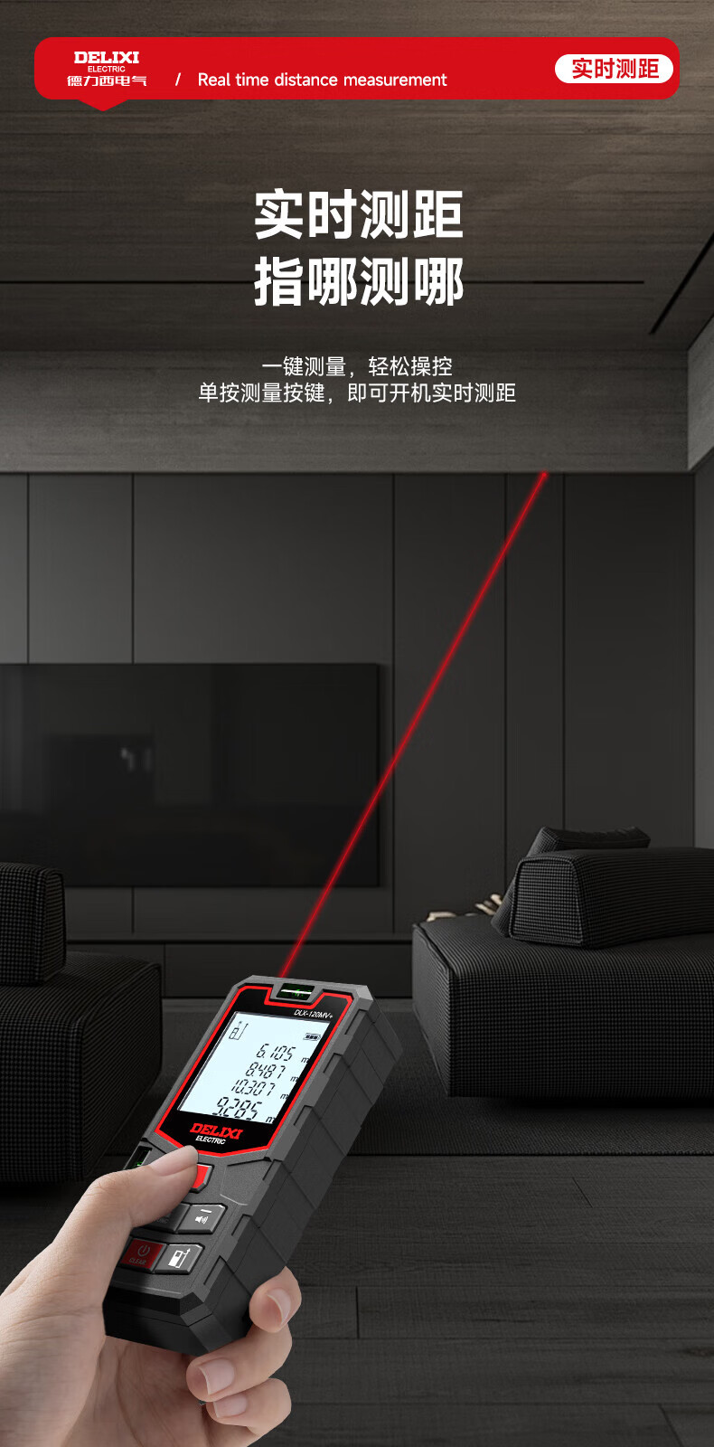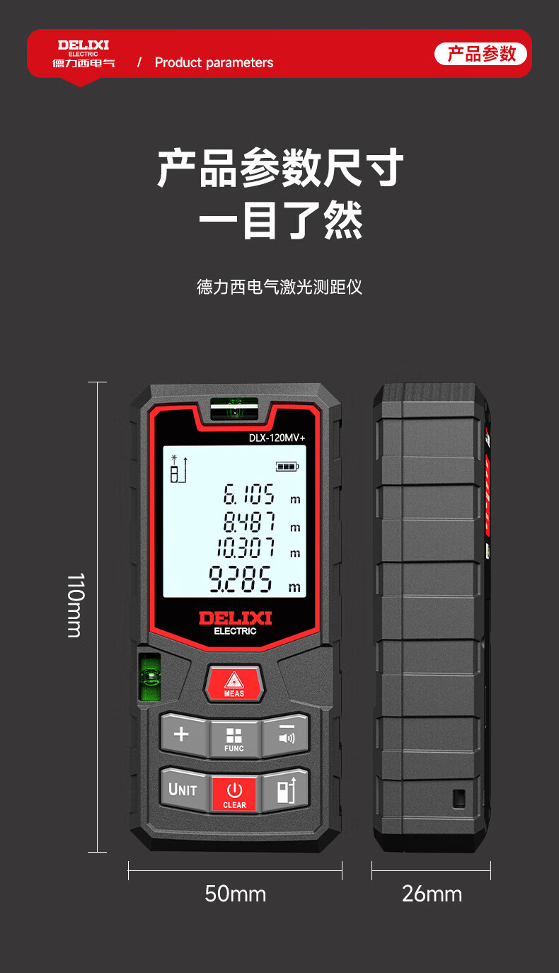 Delixi laser range finder handheld voice broadcast indoor and outdoor high-precision measurement electronic ruler lithium battery red light measuring room flagship voice model DLX-120M