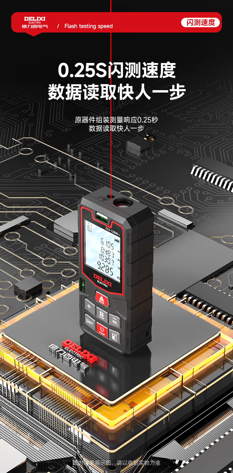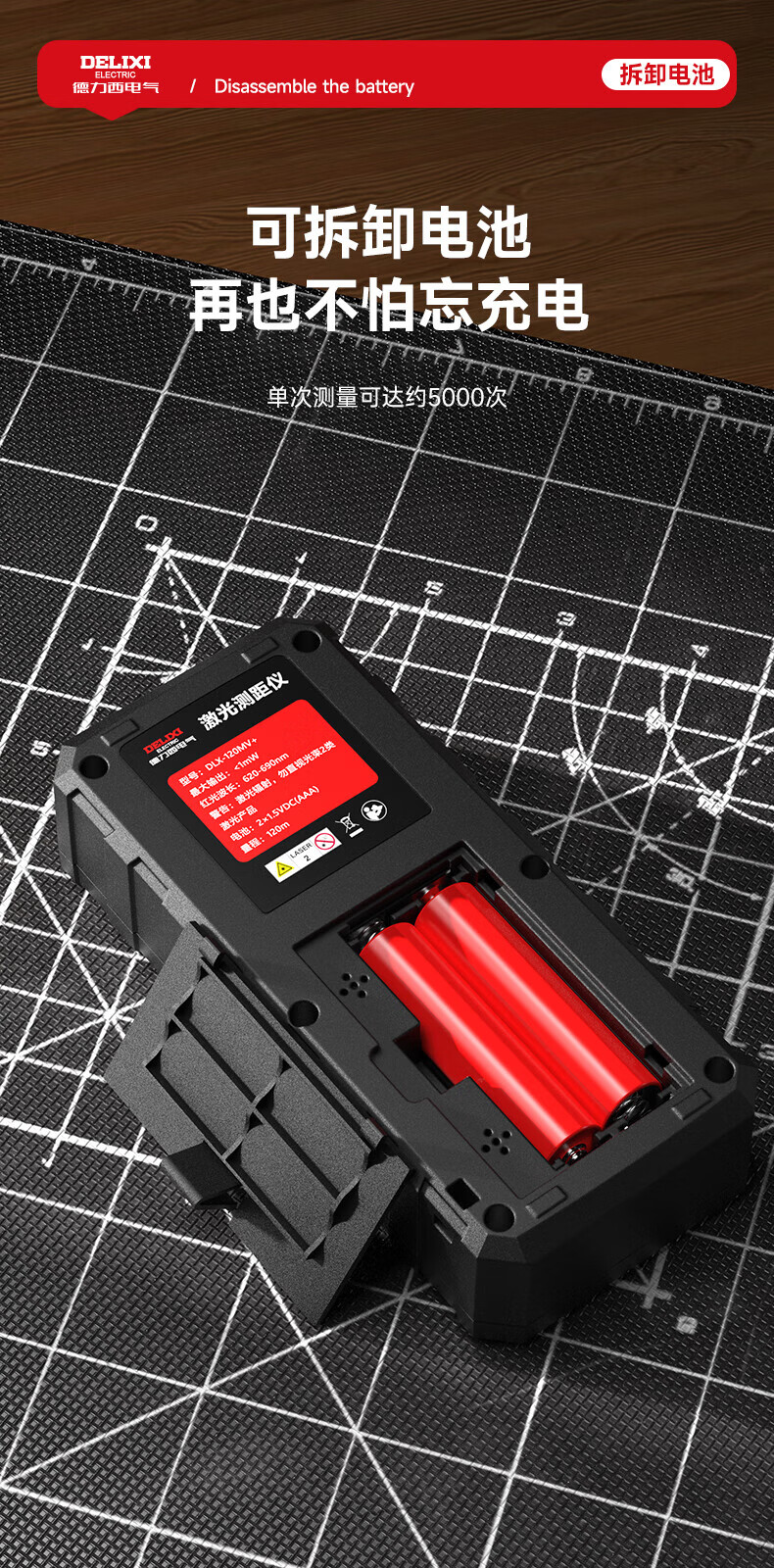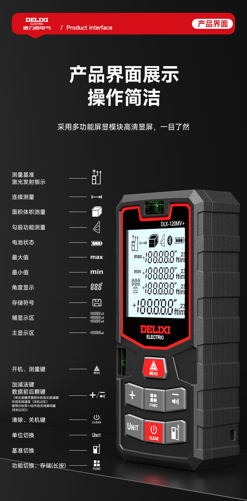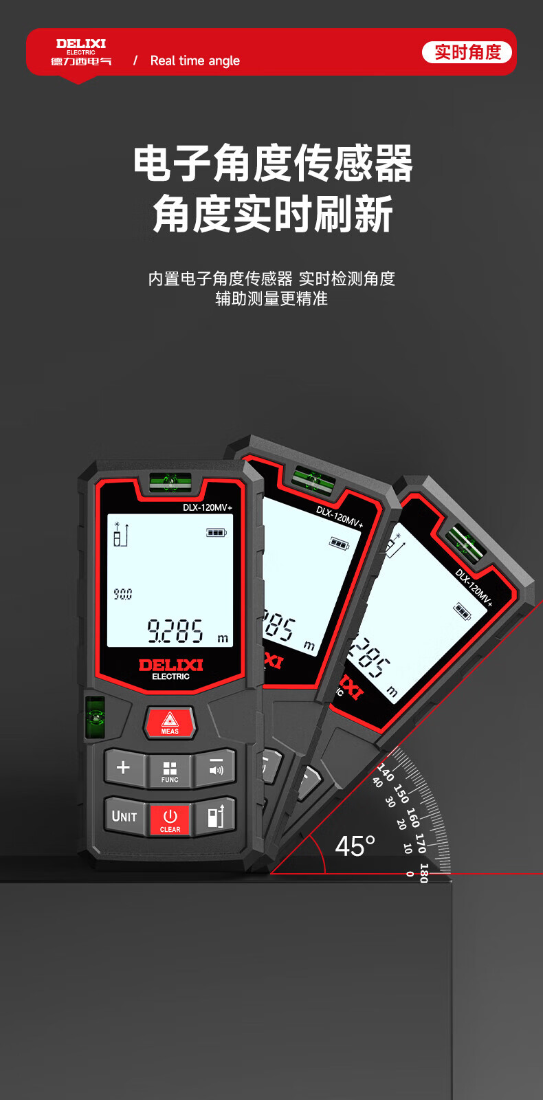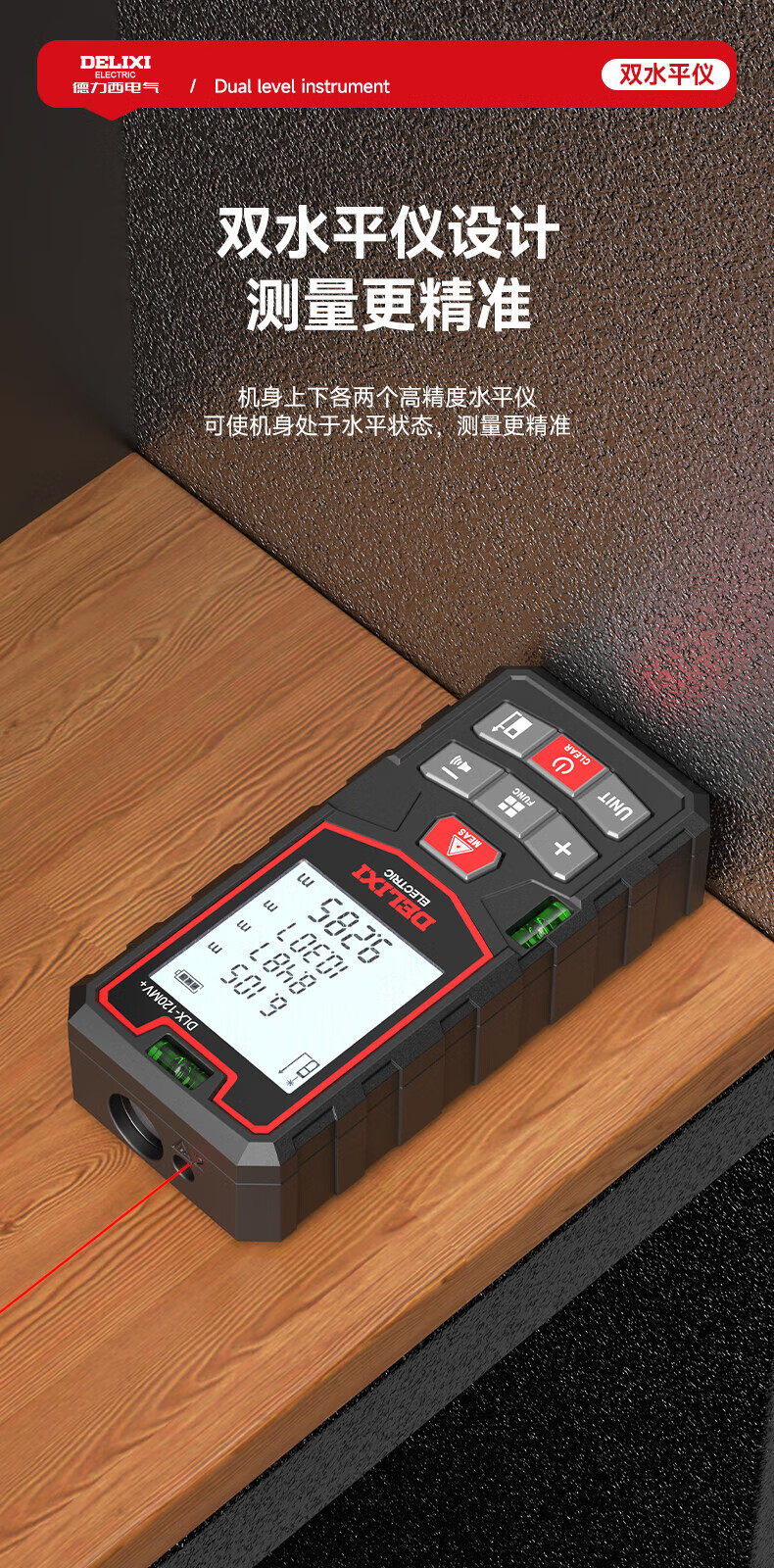 Delixi laser range finder handheld voice broadcast indoor and outdoor high-precision measurement electronic ruler lithium battery red light measuring room flagship voice model DLX-120M