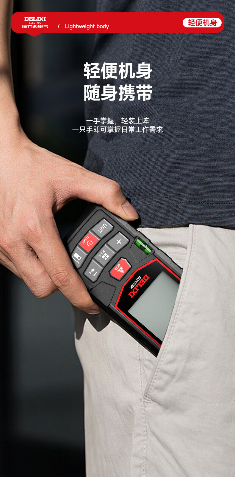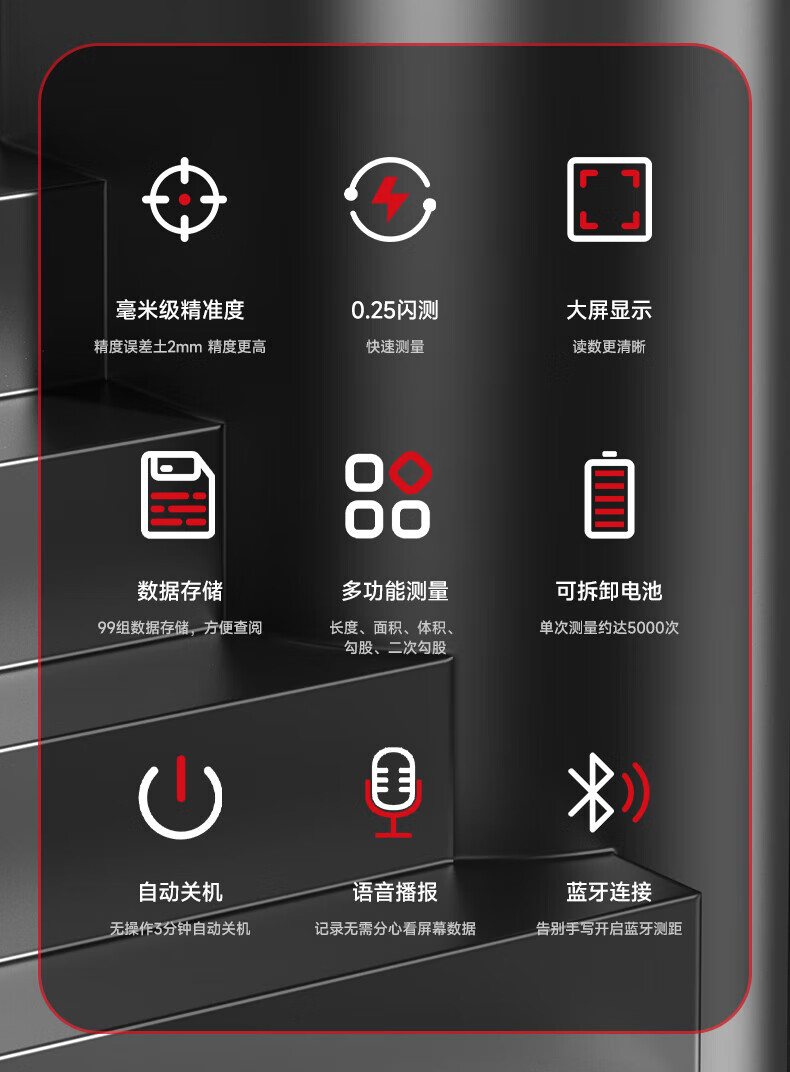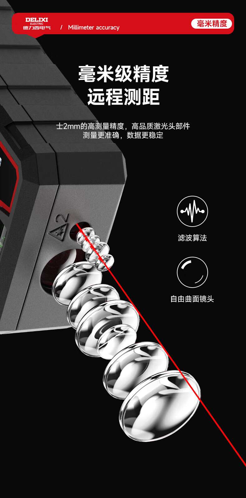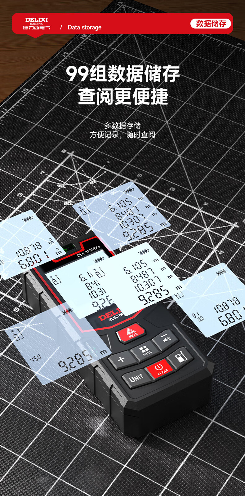 Delixi laser range finder handheld voice broadcast indoor and outdoor high-precision measurement electronic ruler lithium battery red light measuring room flagship voice model DLX-120M