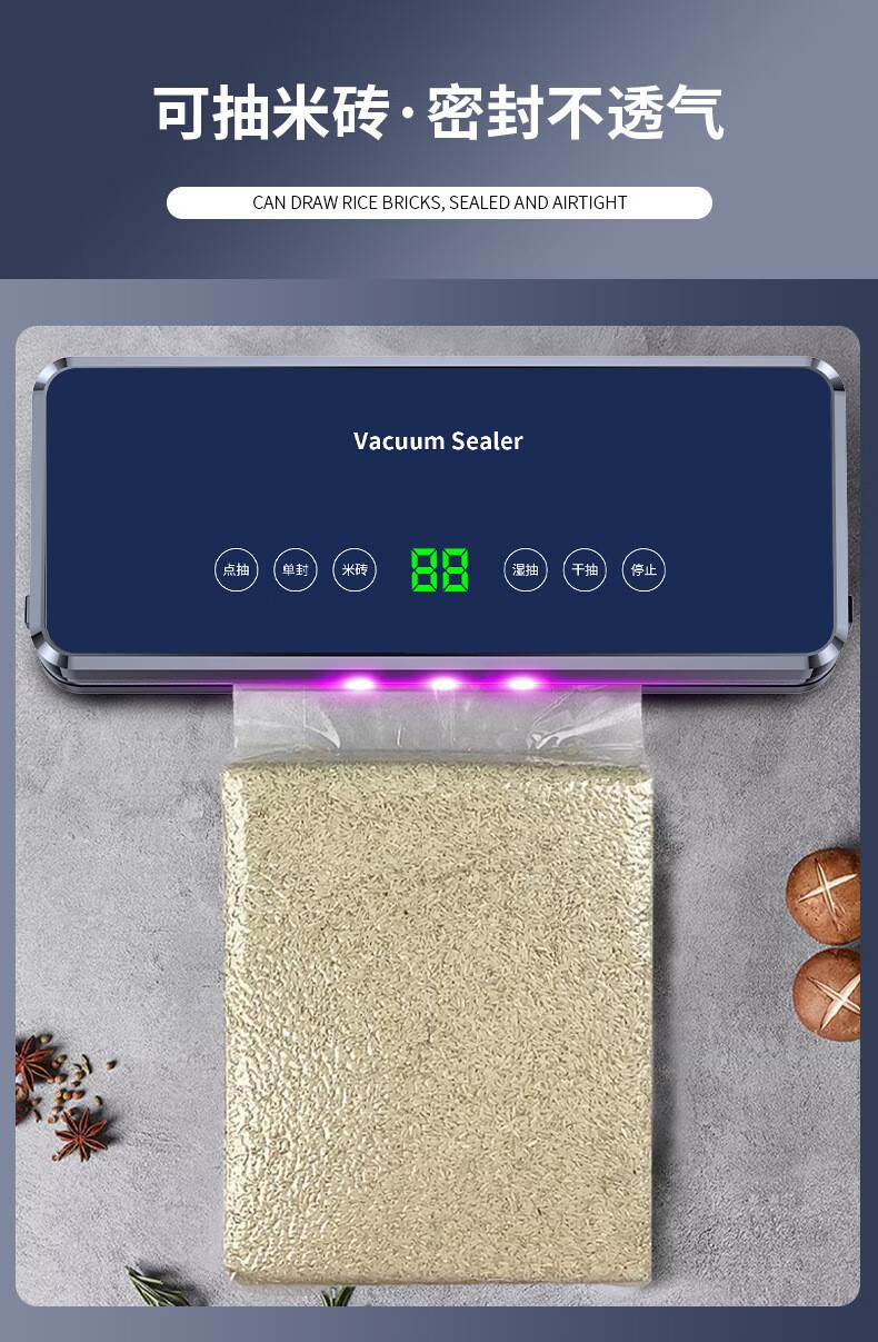 Mitsubishi original German vacuum machine sealing machine integrated dry wet and dry food packaging machine vacuum sealing machine small household with cutter classic copper core purple light + 100 pieces bag 20*25